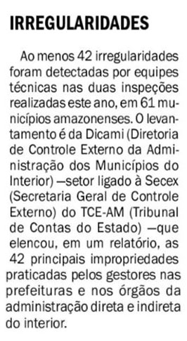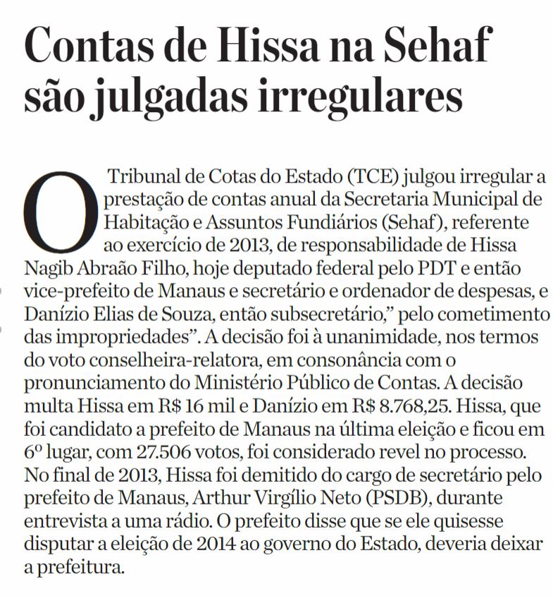 13/11/16 Diário do Amazonas Contas de Hissa na Sehaf são julgadas irregulares