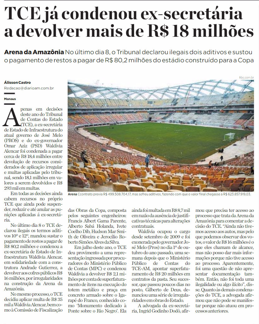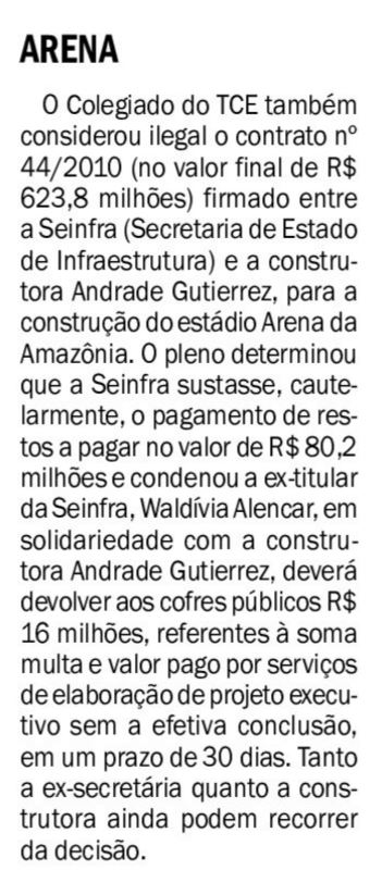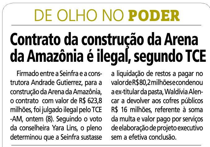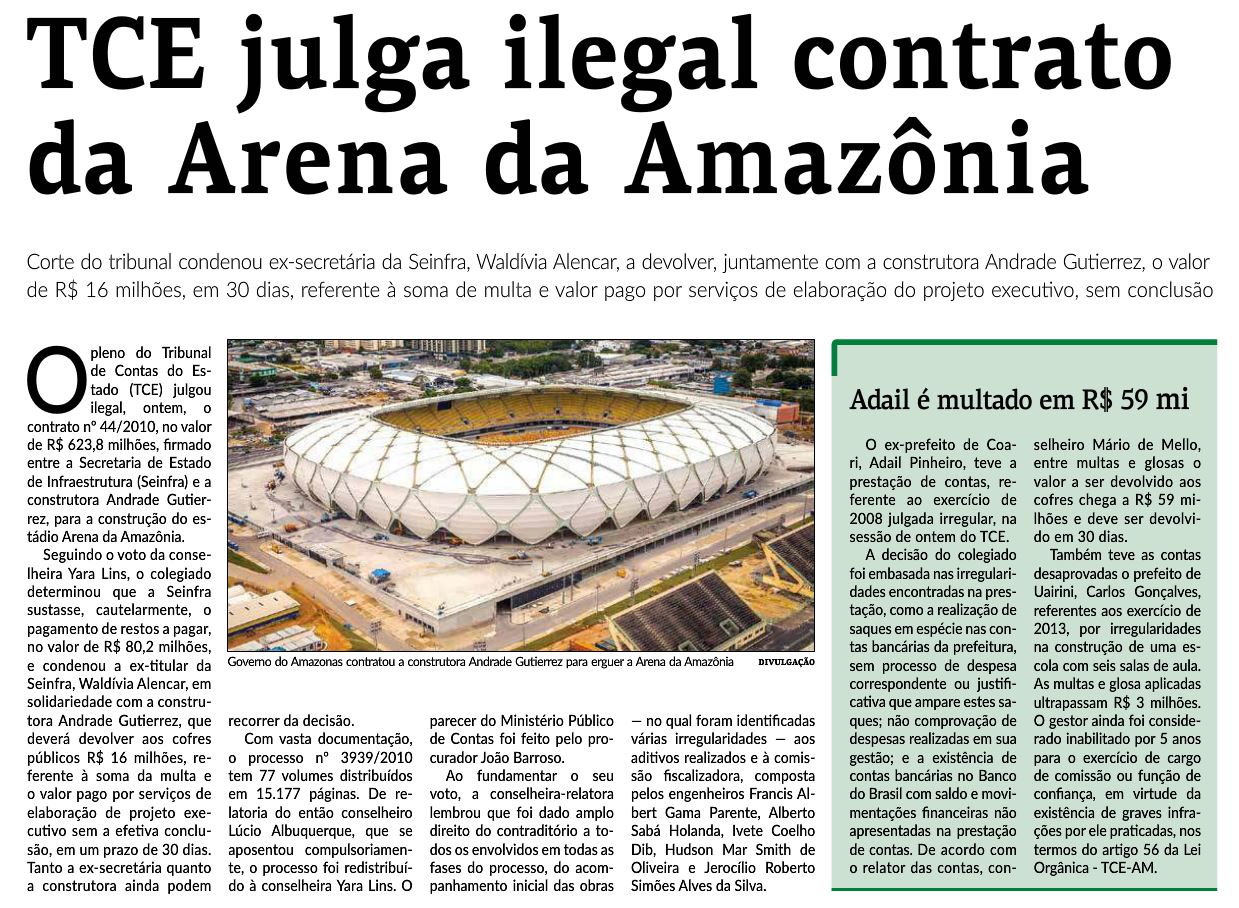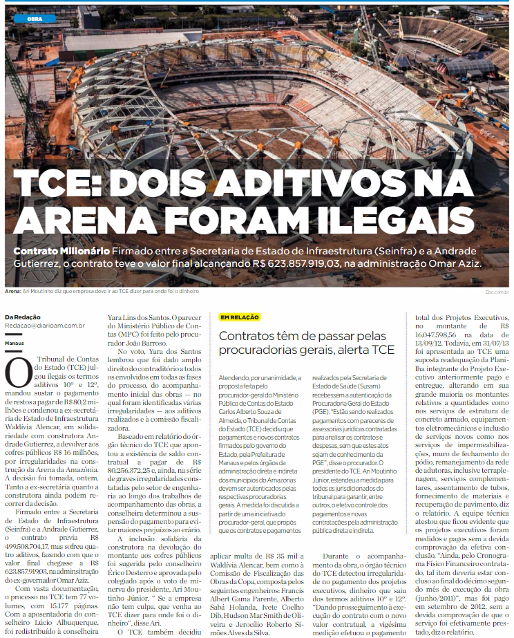 09/11/16 Diário do Amazonas TCE: dois aditivos na arena foram ilegais