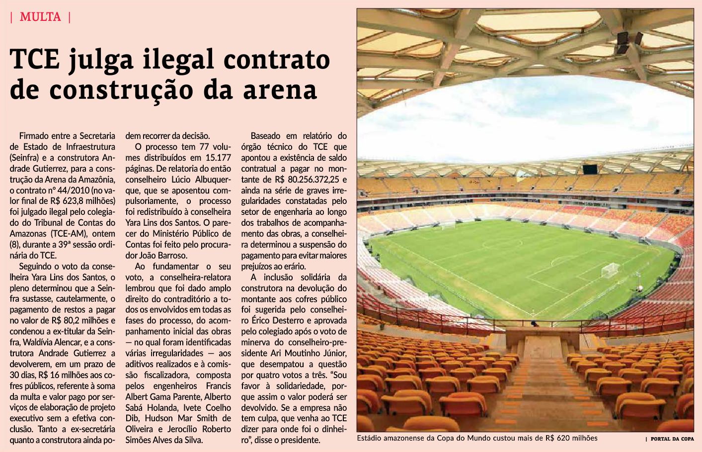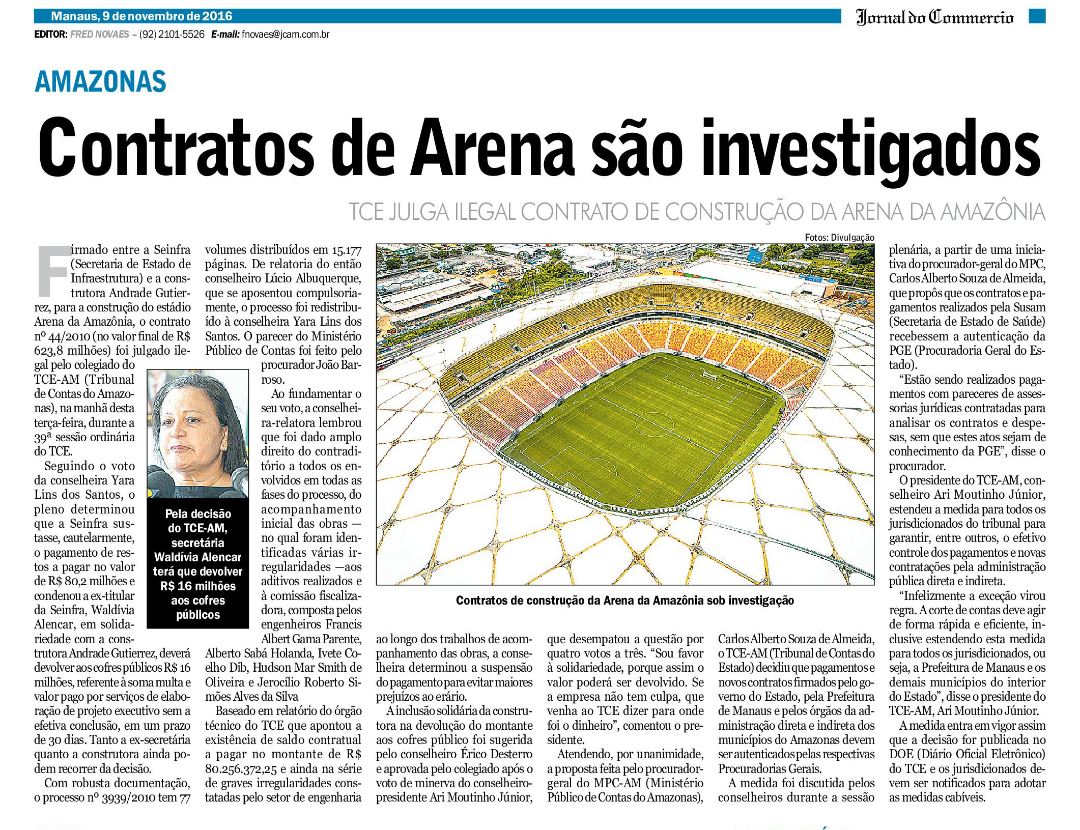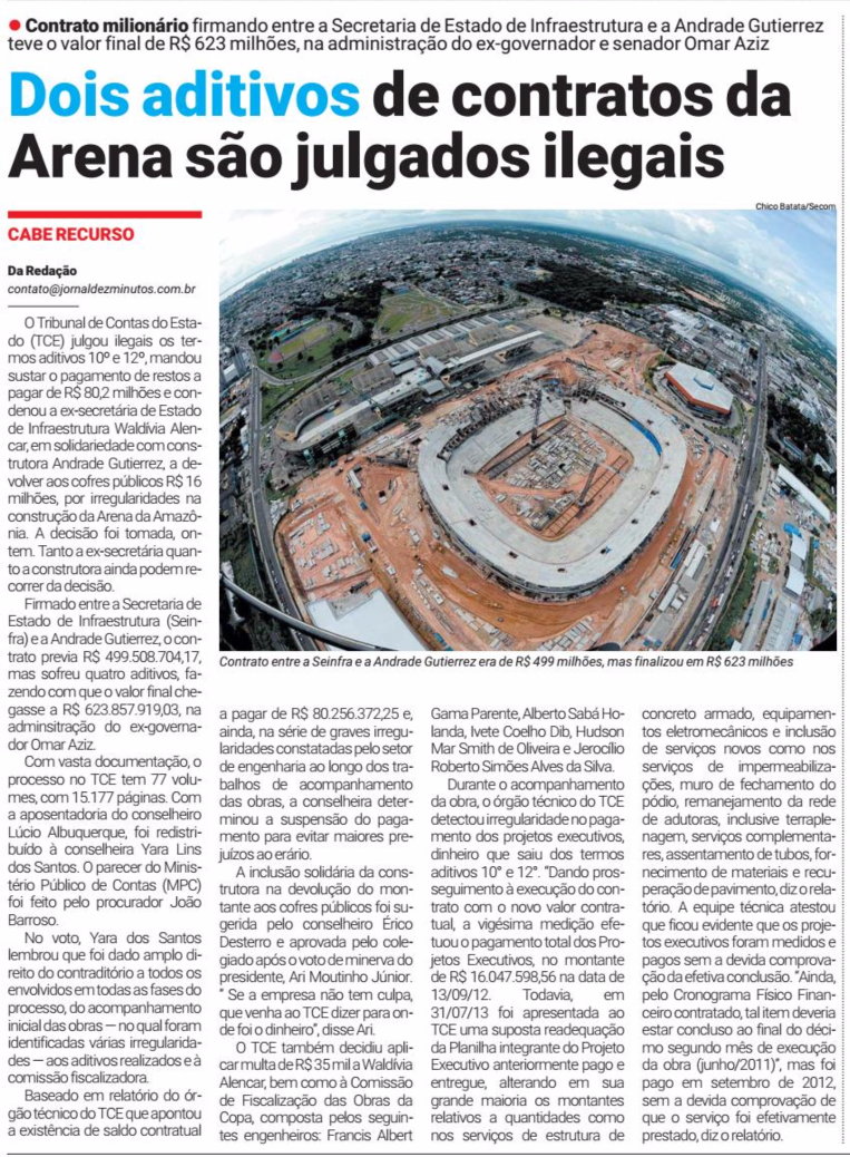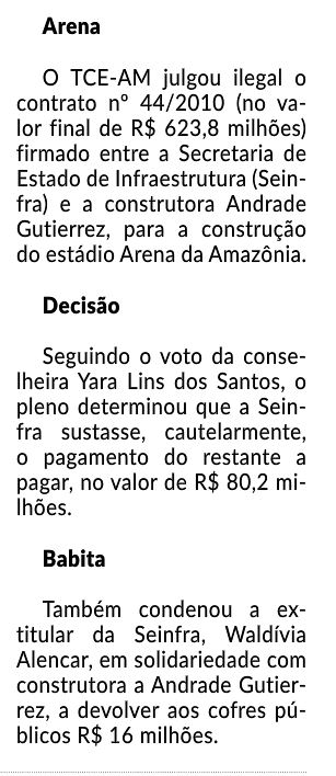 09/11/16 Diário do Amazonas TCE: dois aditivos na arena foram ilegais