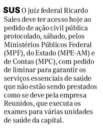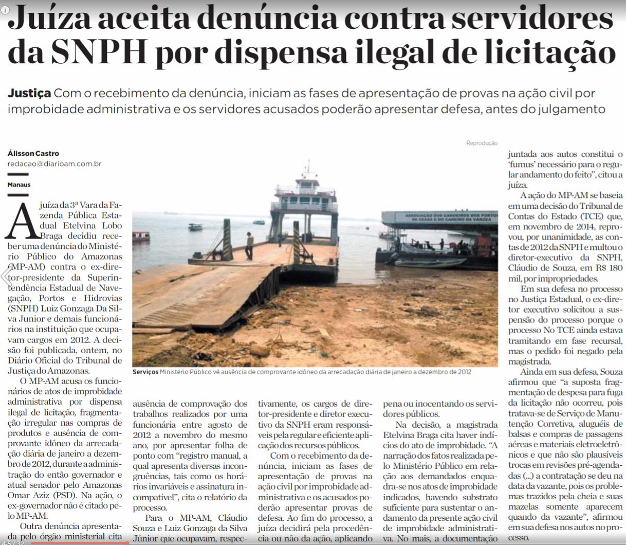 18/11/16 Diário do Amazonas Juíza aceita denúncia contra servidores da SNPH por dispensa ilegal de licitação