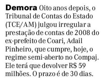 09/11/16 Agora Adail condenado a devolver R$ 59 milhões