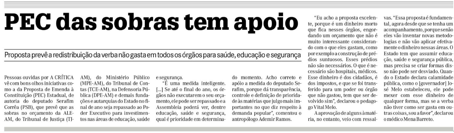 26/11/16 A Crítica PEC das sobras tem apoio