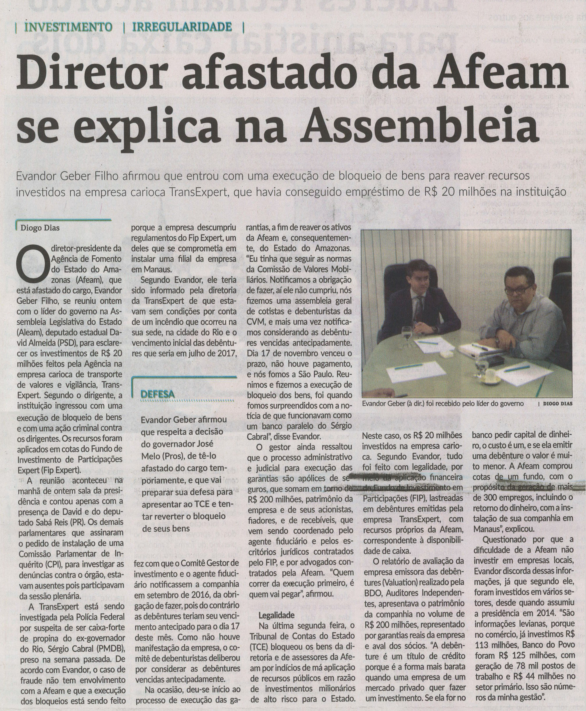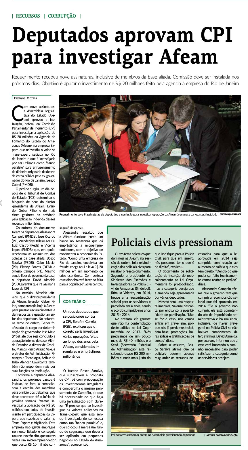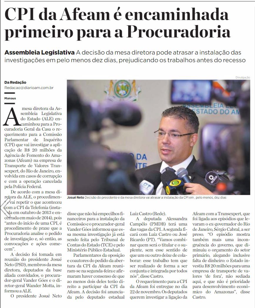 30/11/16 Diário do Amazonas CPI da Afeam é encaminhada primeiro para a Procuradoria