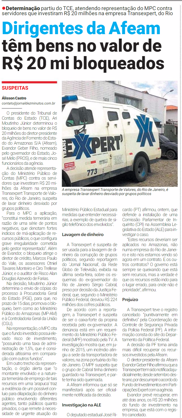 22/11/16 Dez Minutos Dirigentes da Afeam têm bens nov valor de R$ 20 mi bloqueados