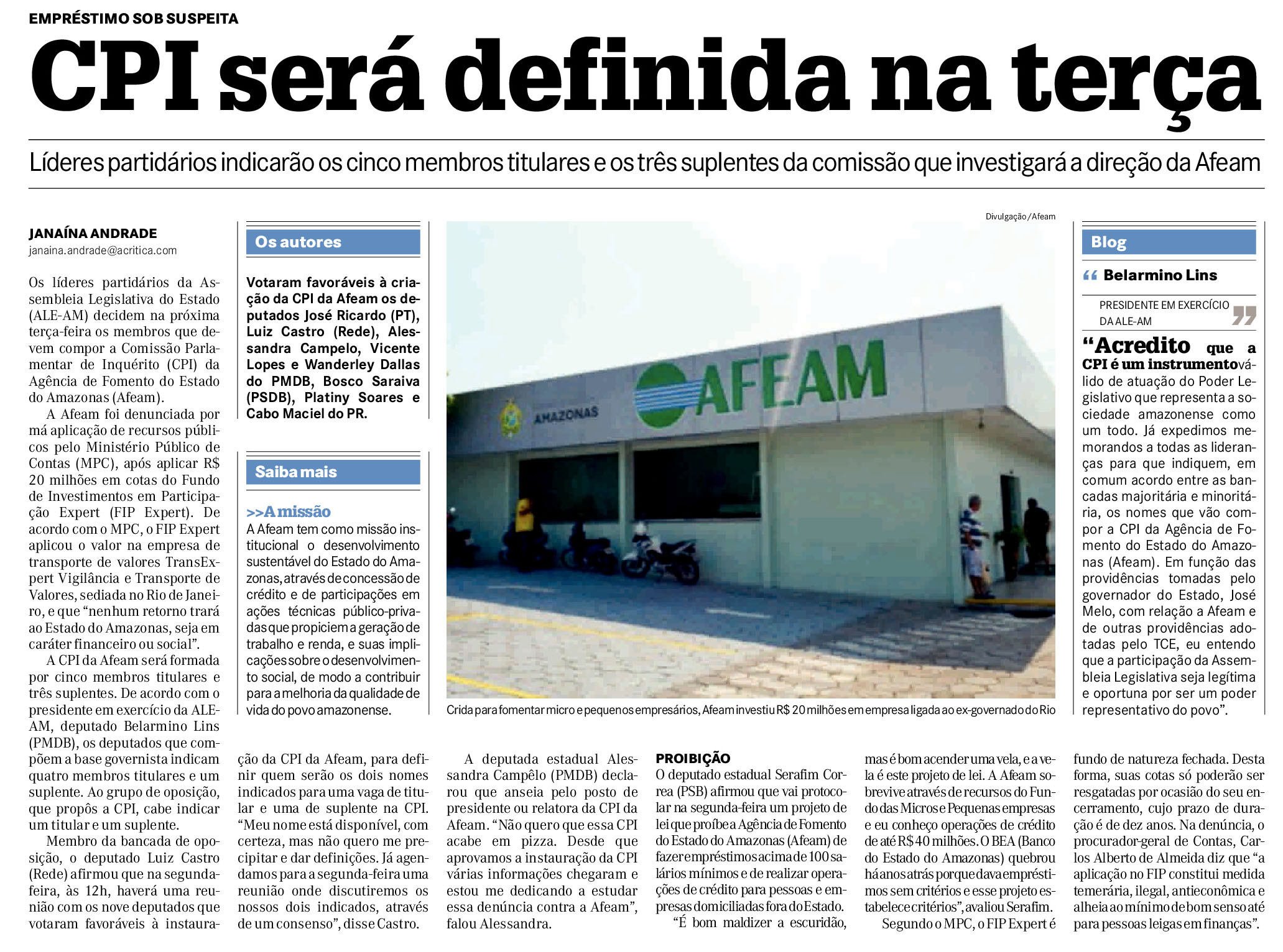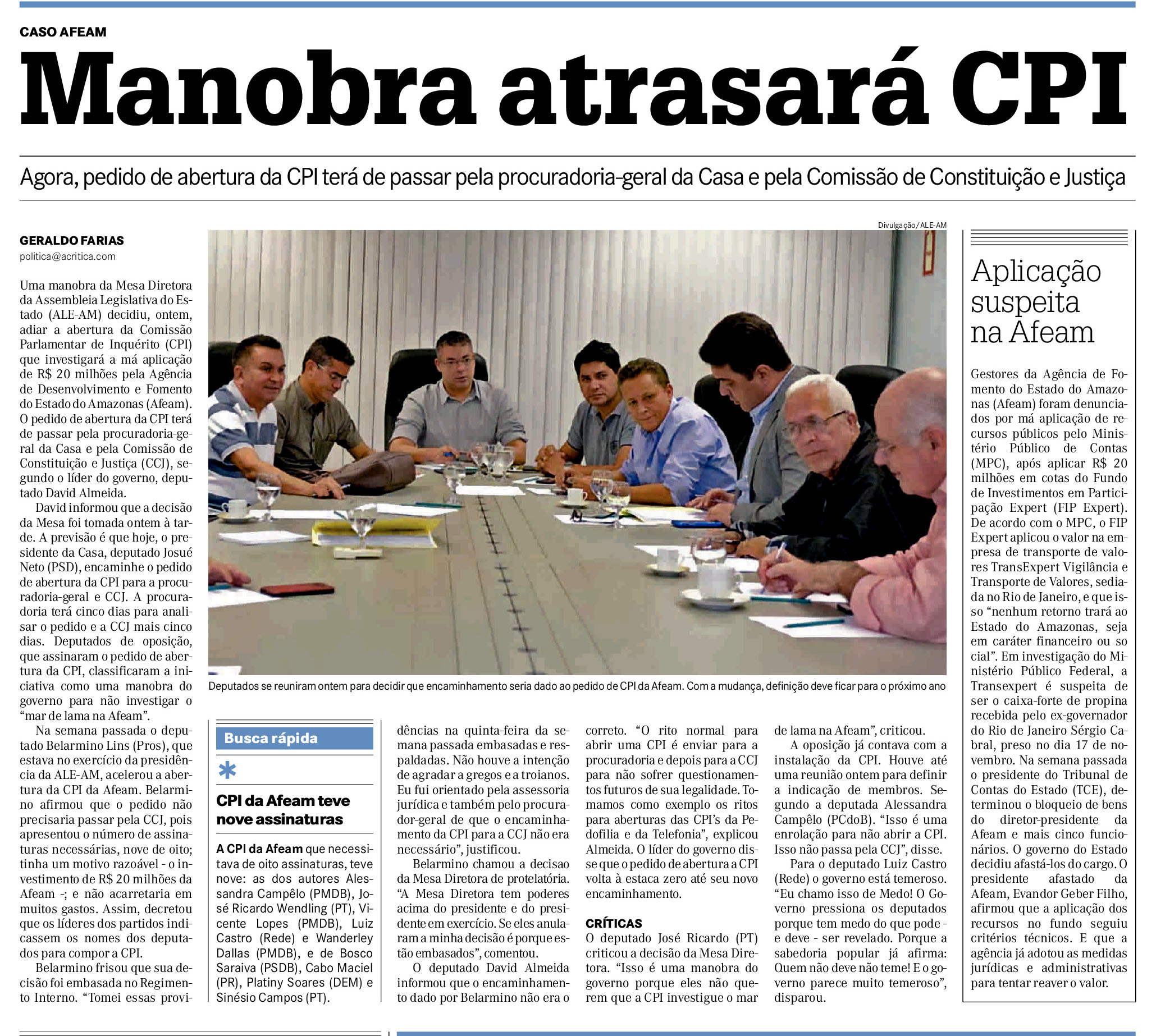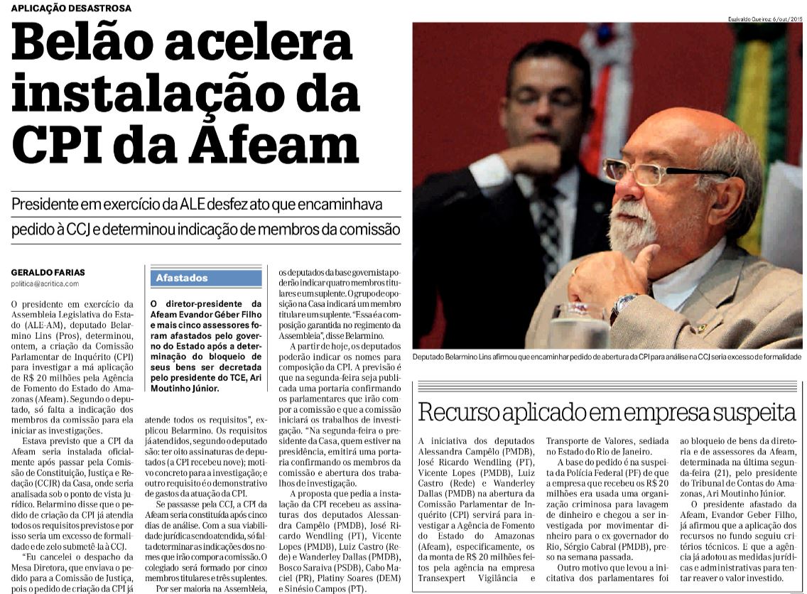 25/11/16 A Crítica Belão acelera instalação da CPI da Afeam