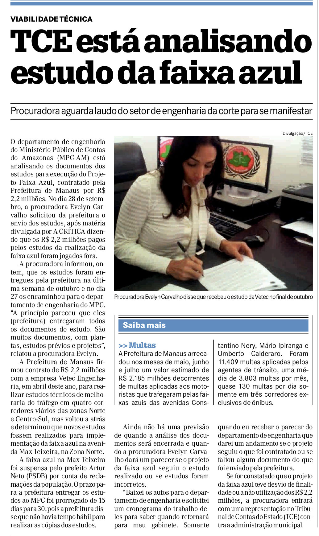 15/11/16 A Crítica TCE está analisando estudo da faixa azul