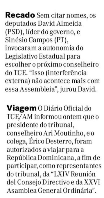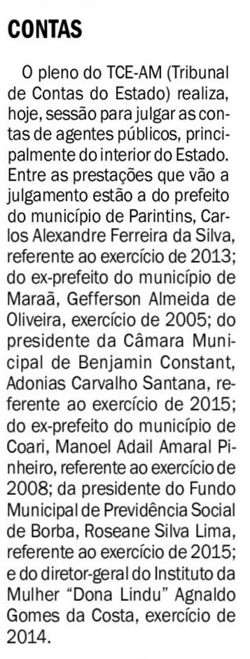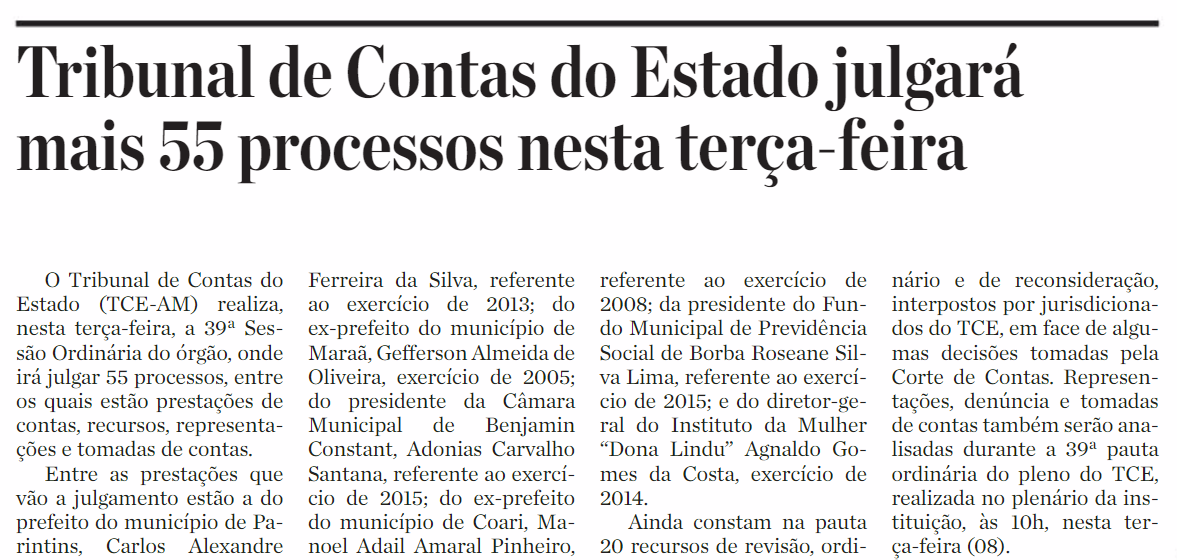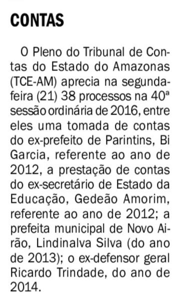 08/11/16 Diário do Amazonas Tribunal de Contas do Estado julgará mais de 55 processos nesta terça-feira