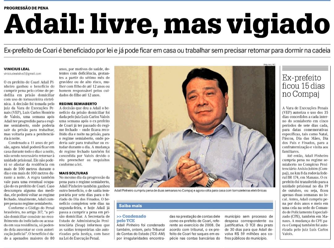 09/11/16 A Crítica Adail: livre, mas vigiado
