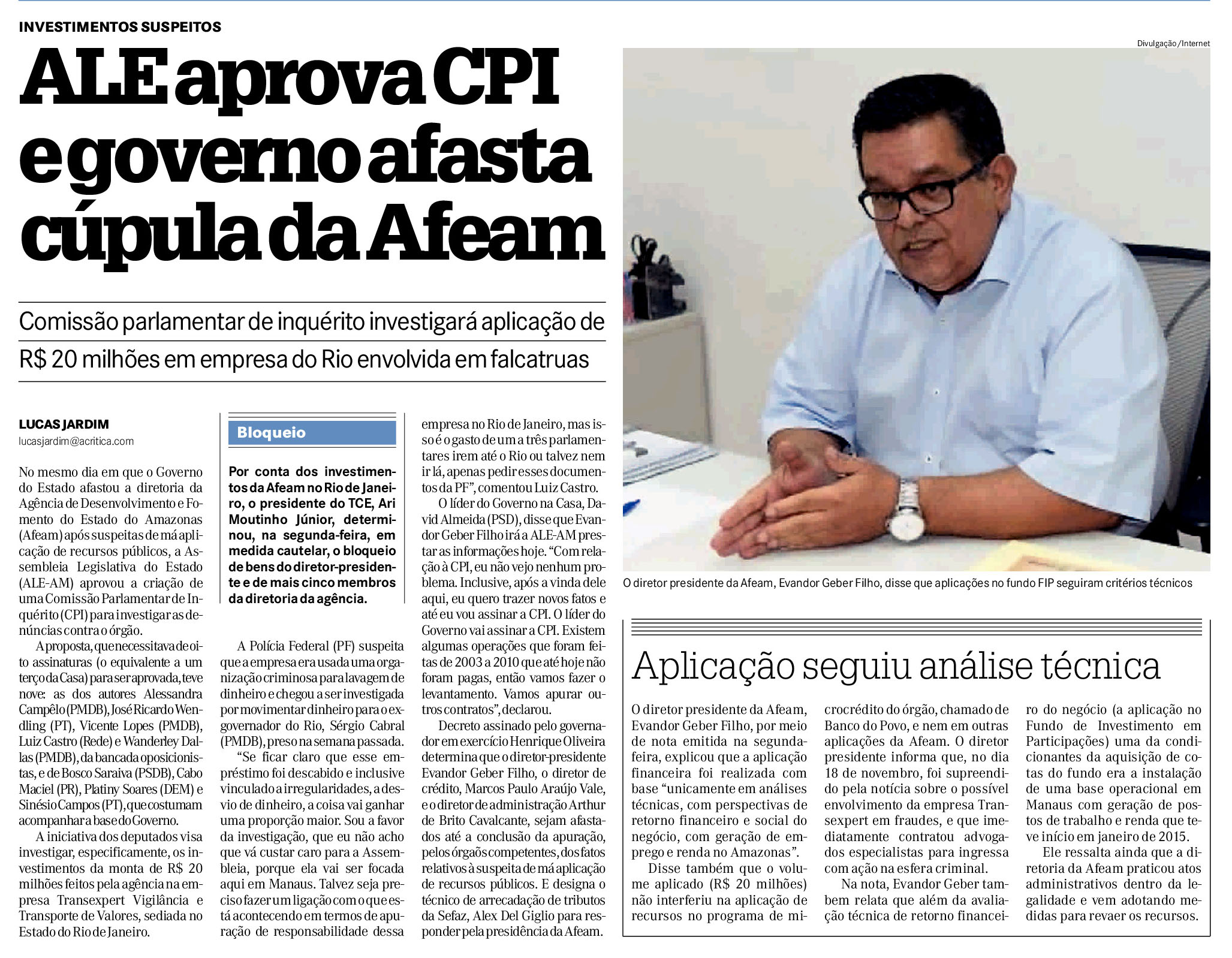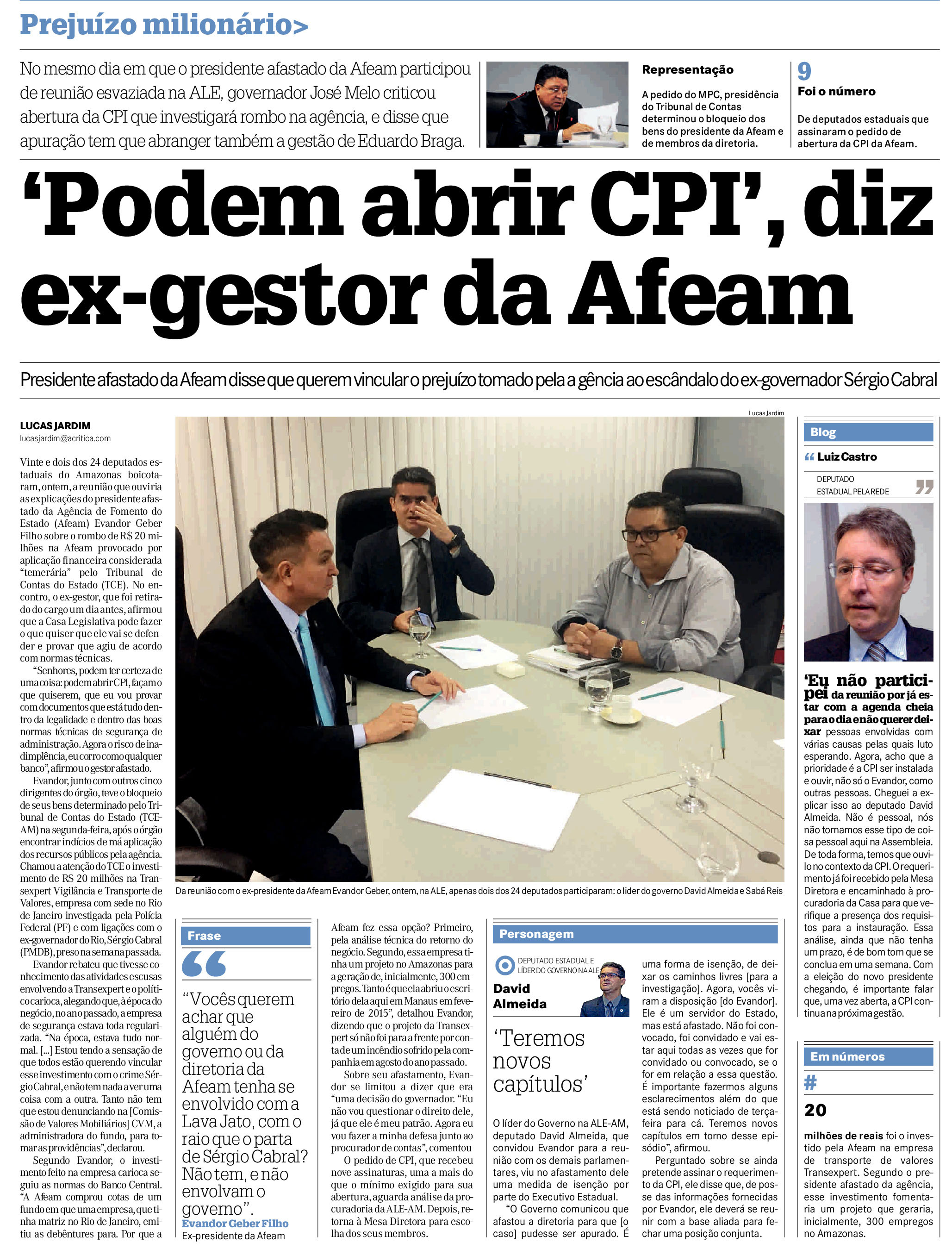 24/11/16 A Crítica ' Pode abrir CPI', diz ex-gestor da Afeam