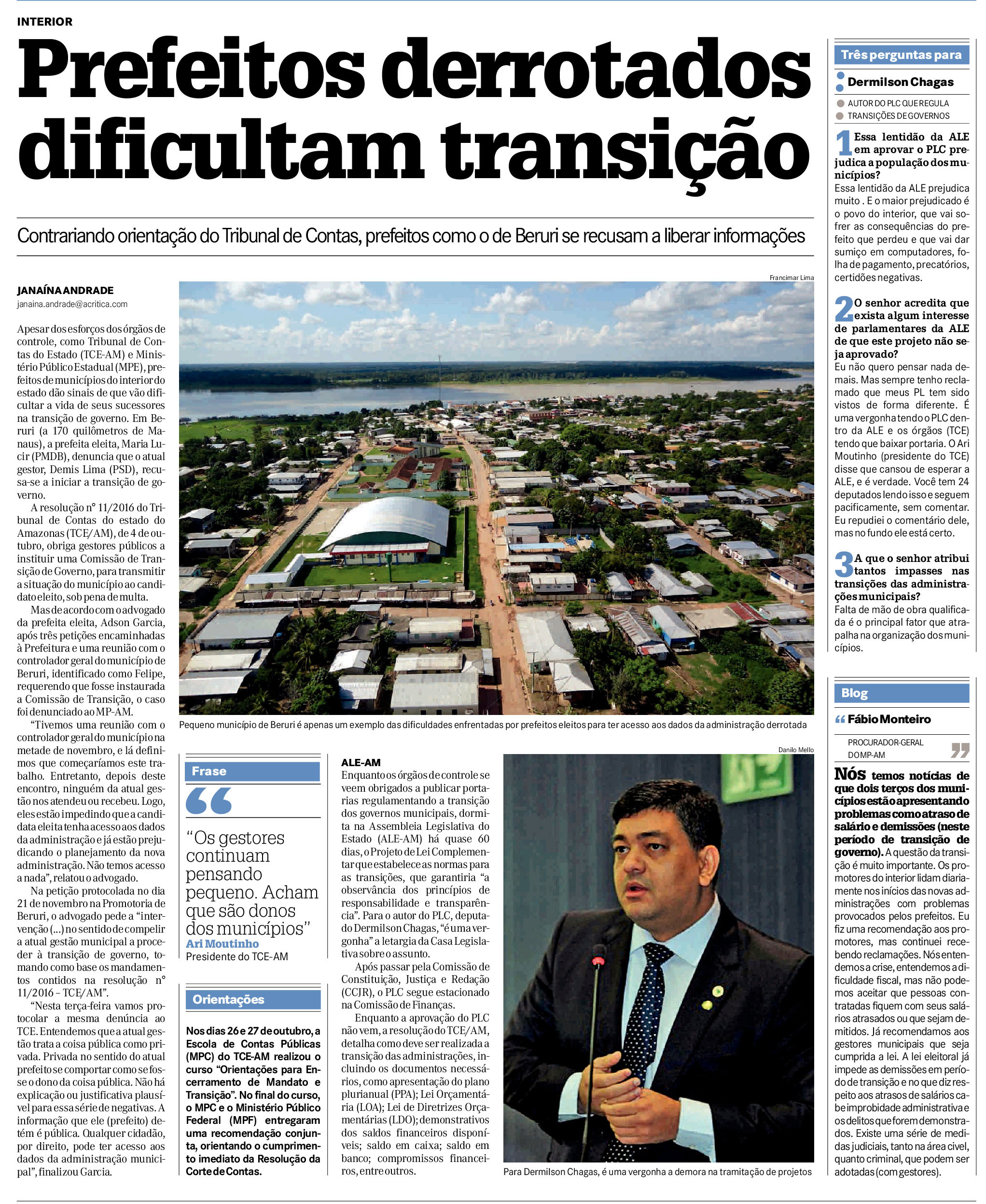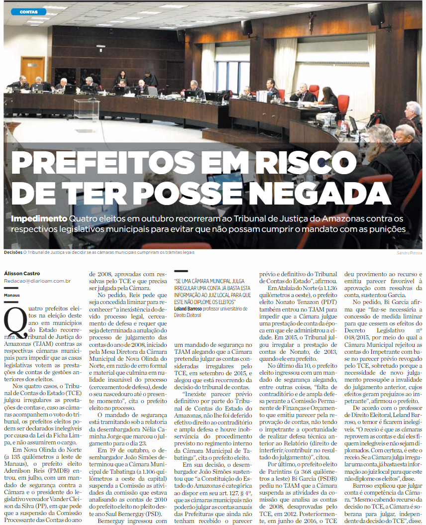 14/11/16 Diário do Amazonas Prefeitos em risco de ter  posse negada