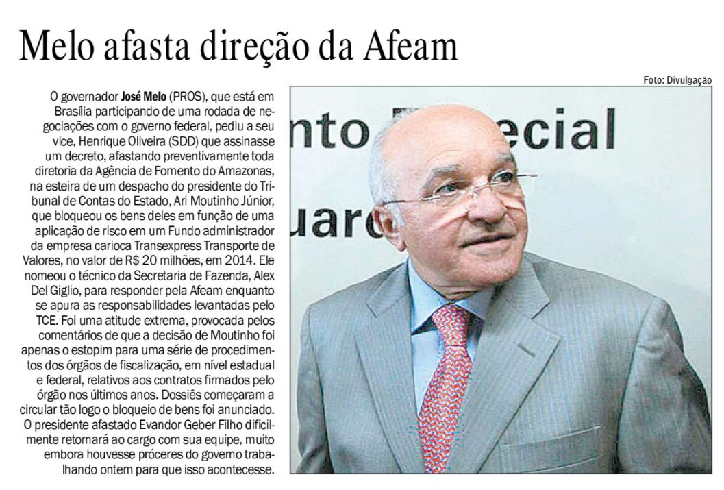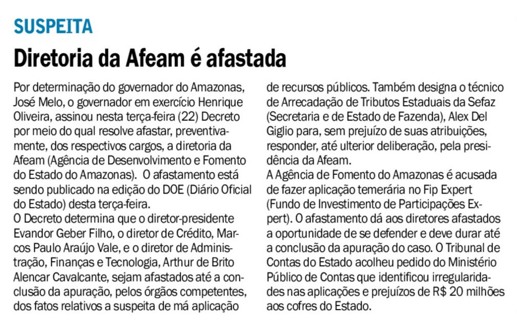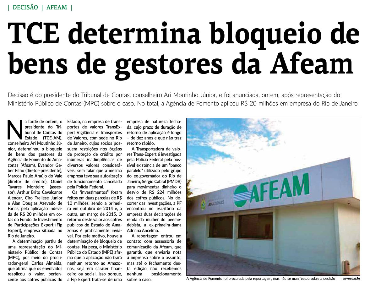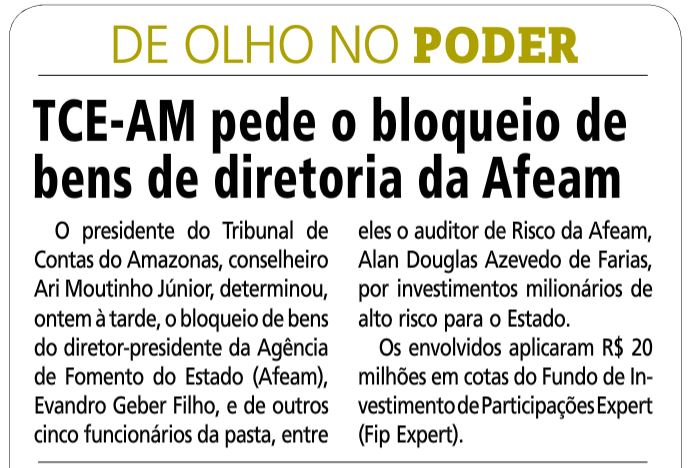 22/11/16 Em Tempo TCE determina bloque de bens de gestores da Afeam