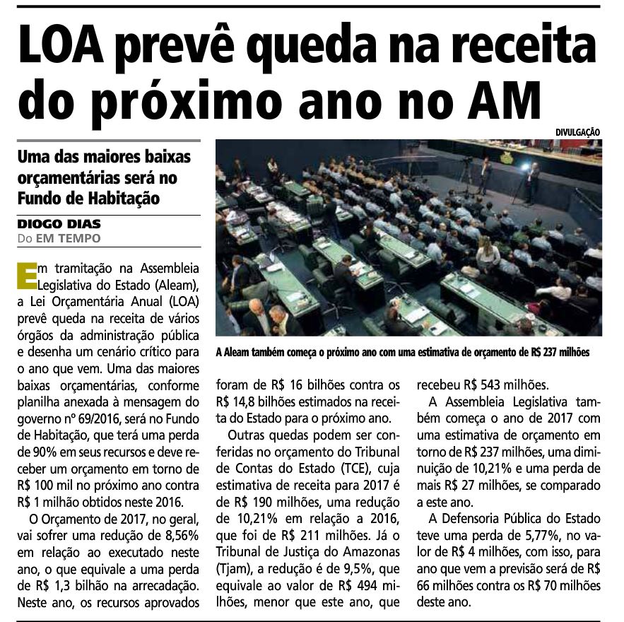 09/11/16 Agora LOA prevê queda na receita do próximo ano no AM