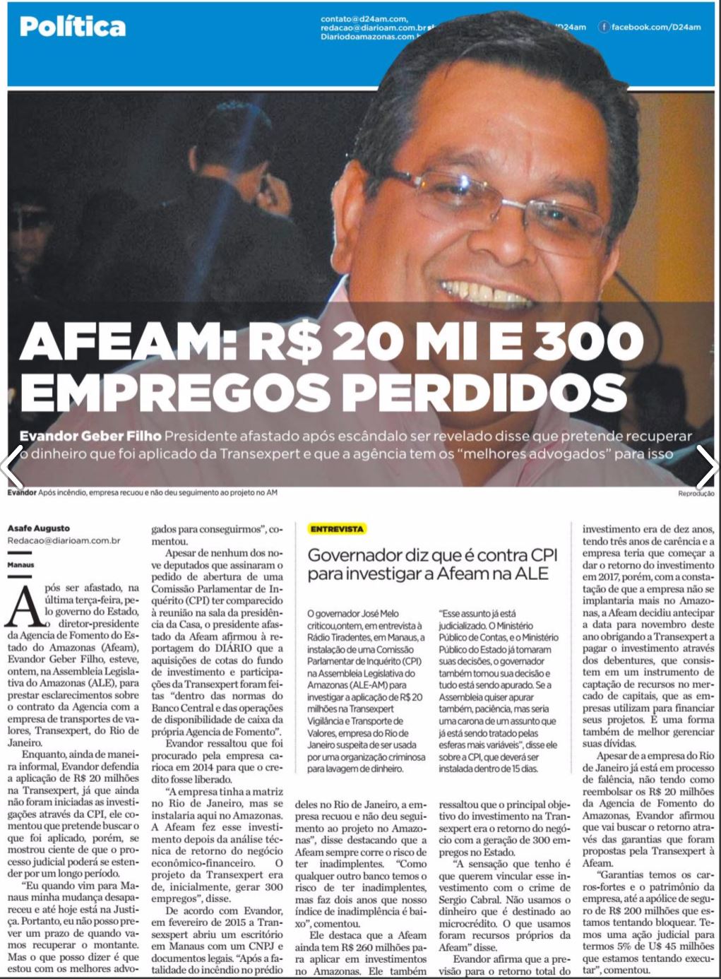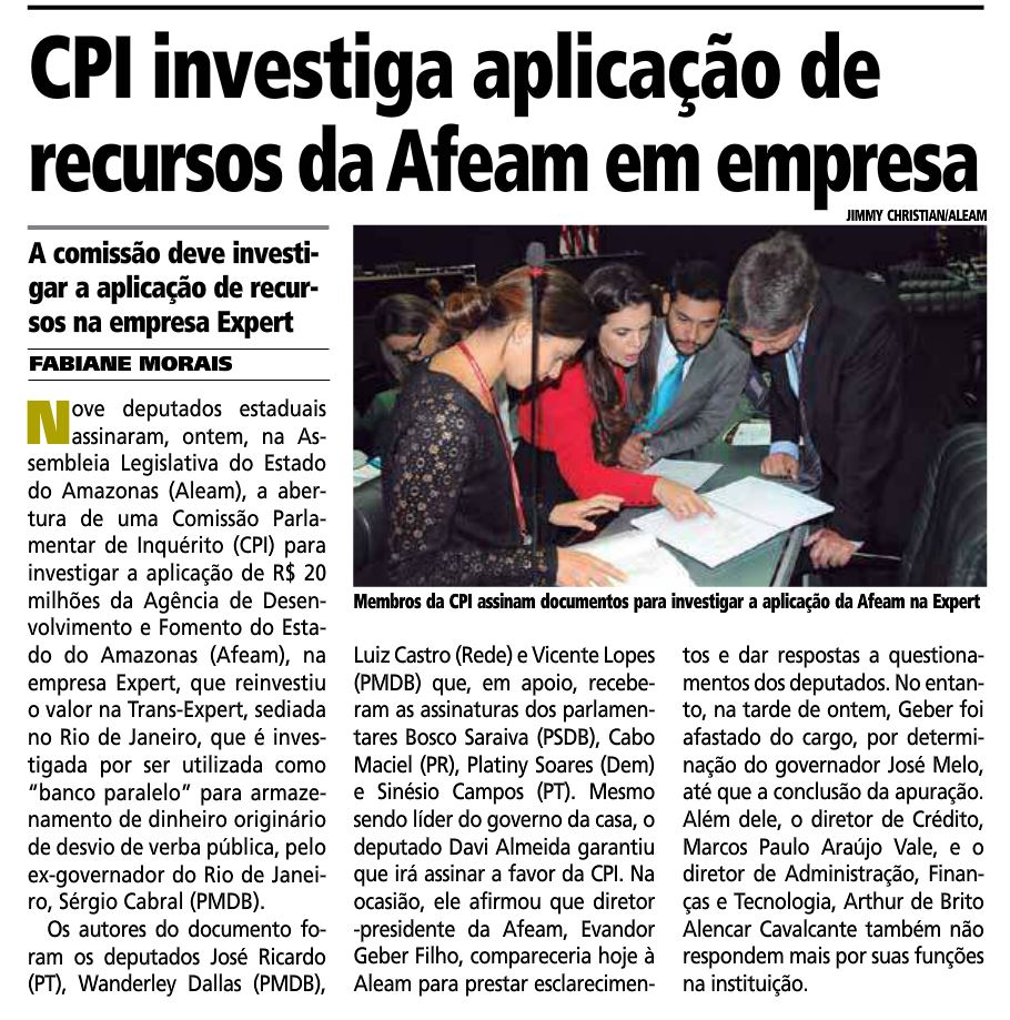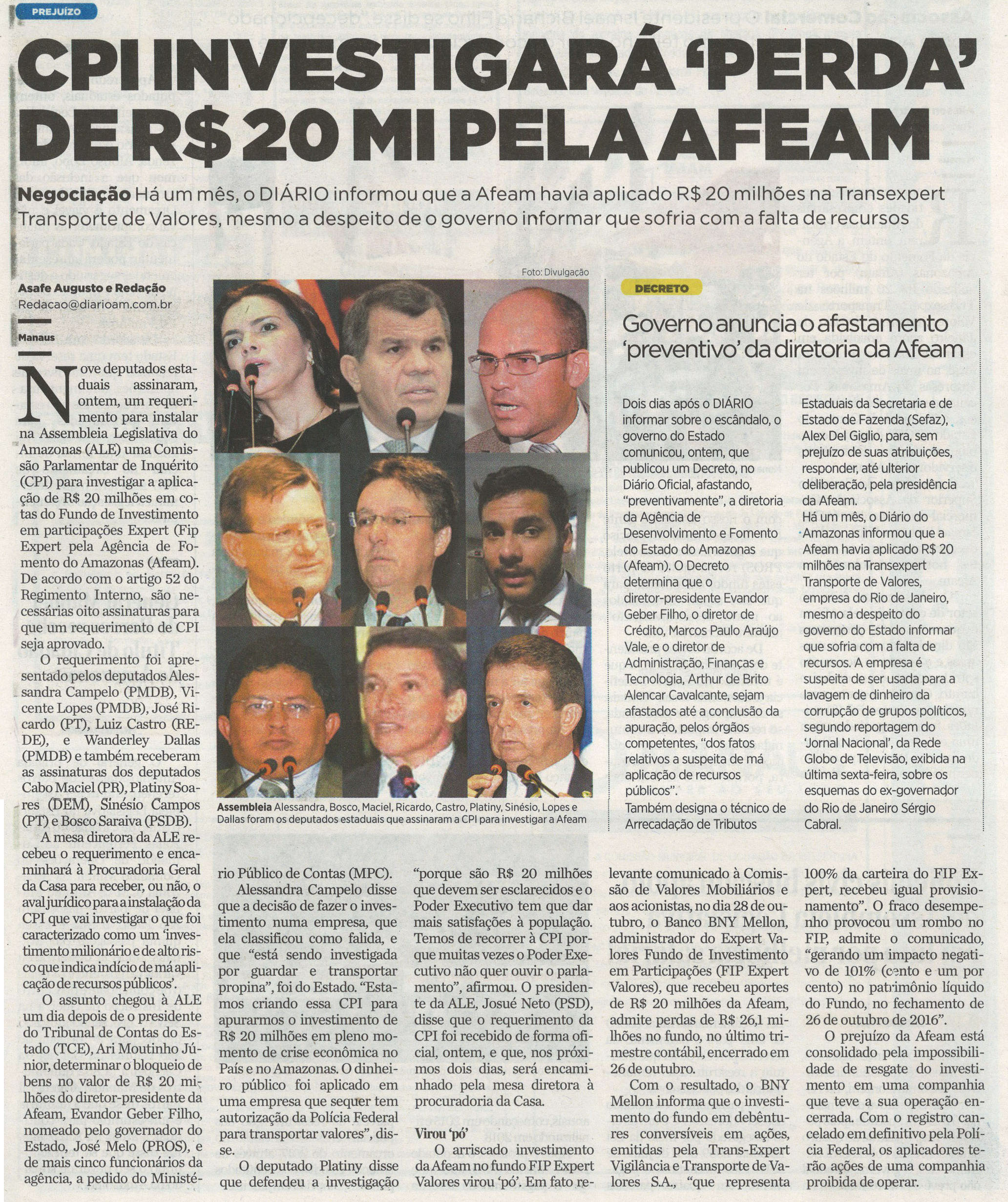 23/11/16 Diário do Amazonas CPI investigará 'perda' de R4 20 mi Pela Afeam