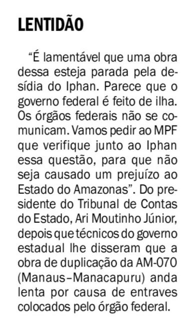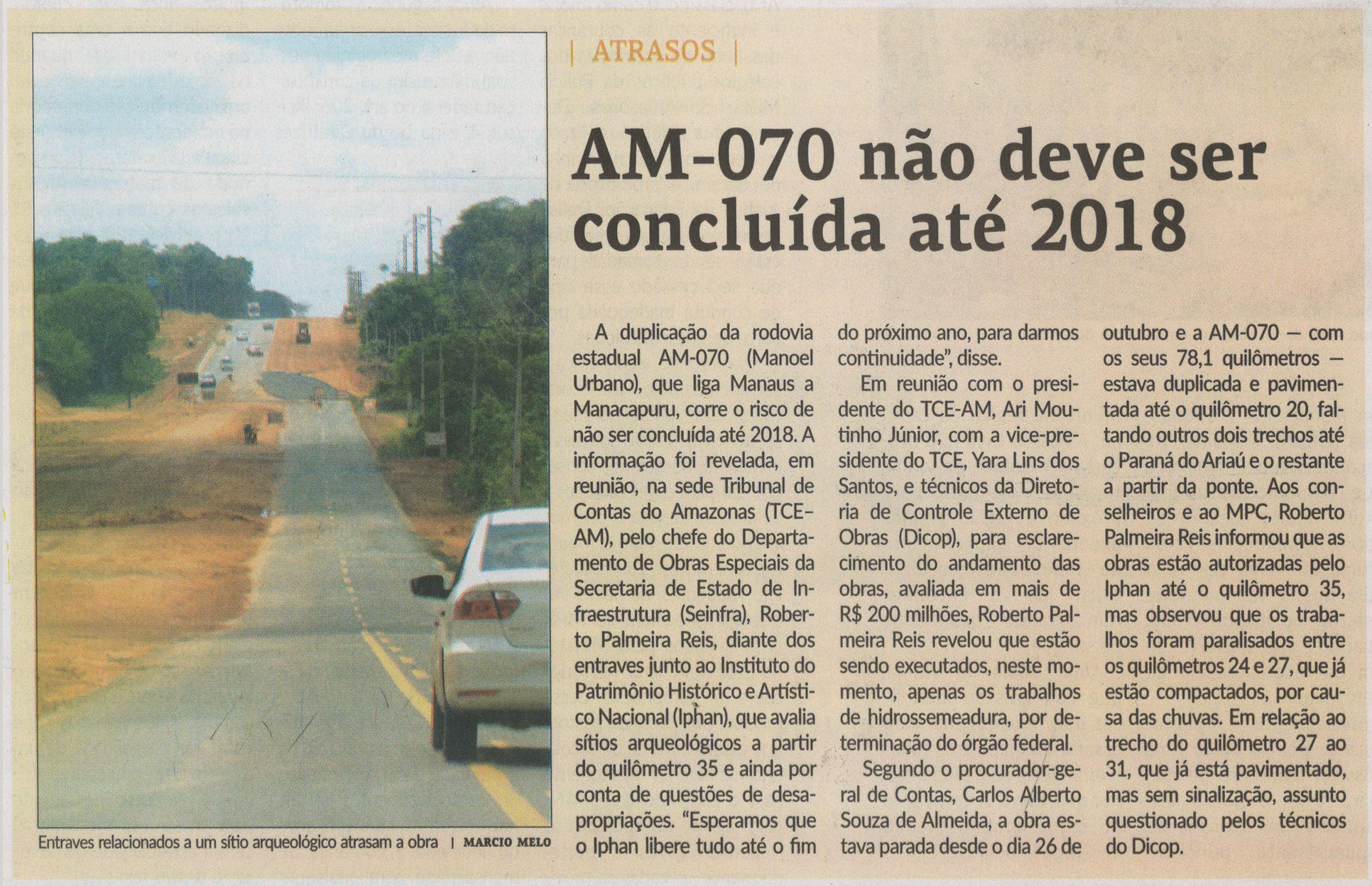 29/11/16 Em Tempo AM-070 não deve ser concluída até 2018