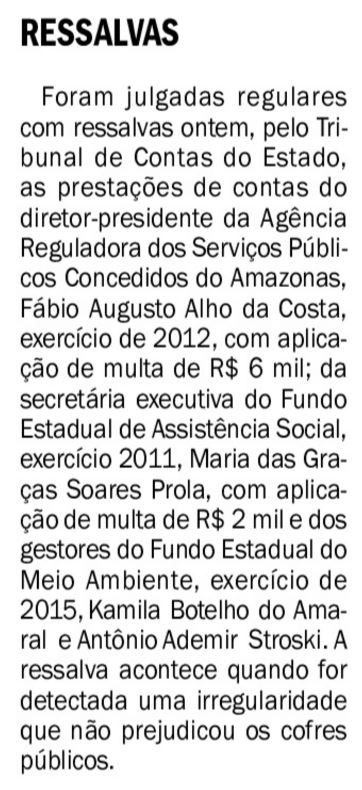29/11/16 Diário do Amazonas 'Restrições' de Rossieli