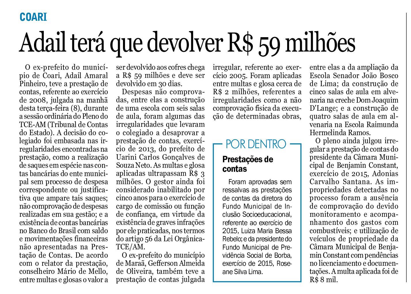 09/11/16 Jornal do Commercio Adail terá que devolver R$ 59 milhões