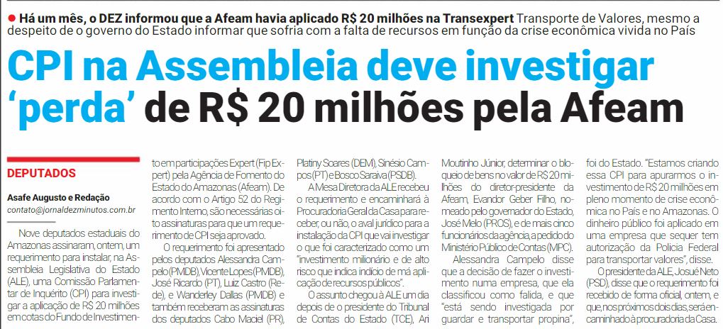 23/11/16 Em Tempo Deputados aprovam CPI para investigar Afeam