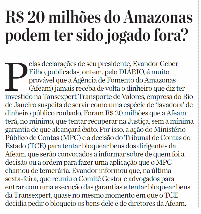 22/11/16 Diário do Amazonas R$ 20 milhões do Amazonas podem ter sido jogado fora?