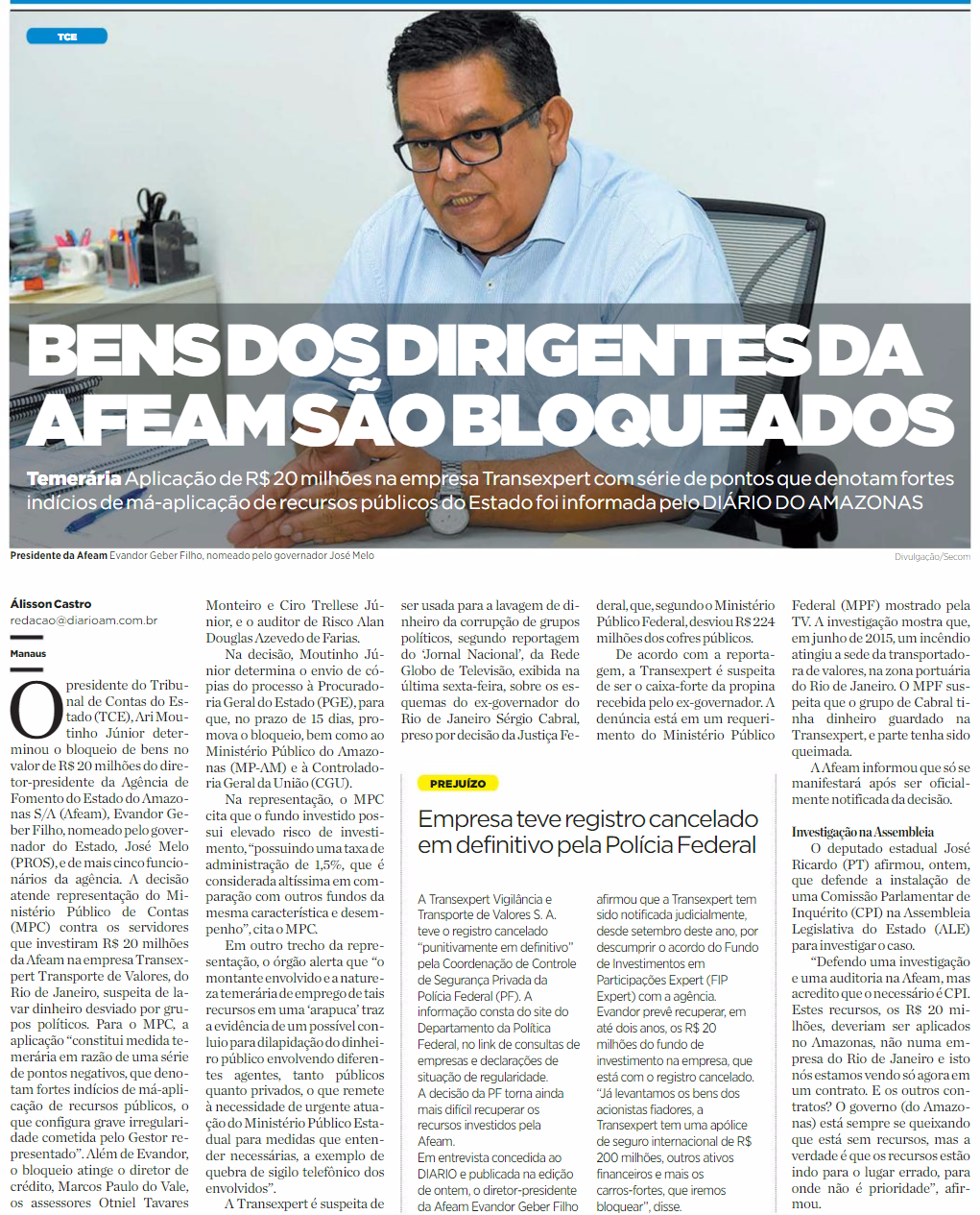 22/11/16 Diário do Amazonas BENS DO DIRIGENTES DA AFEAM SÃO BLOQUEADOS