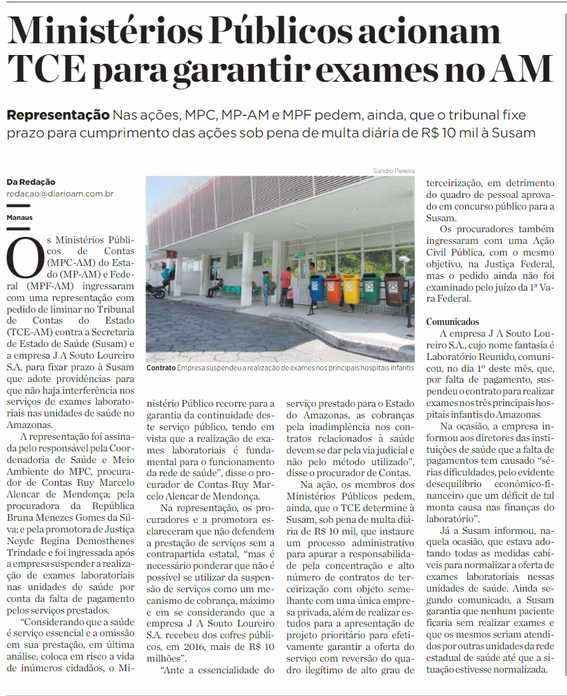 21/11/16 Diário do Amazonas Ministérios Públicos acionam TCE para garantir exames no AM