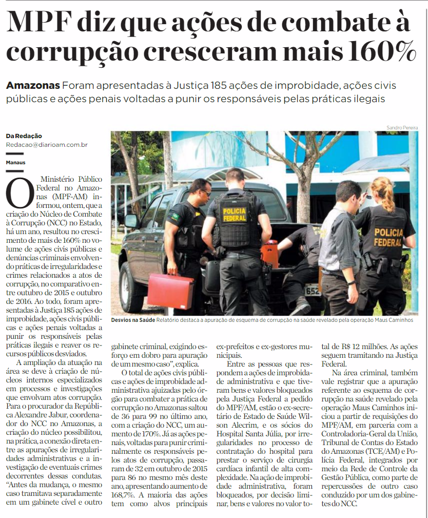 08/11/16 Diário do Amazonas MPF diz que ações de combate à corrupção cresceram mais 160%