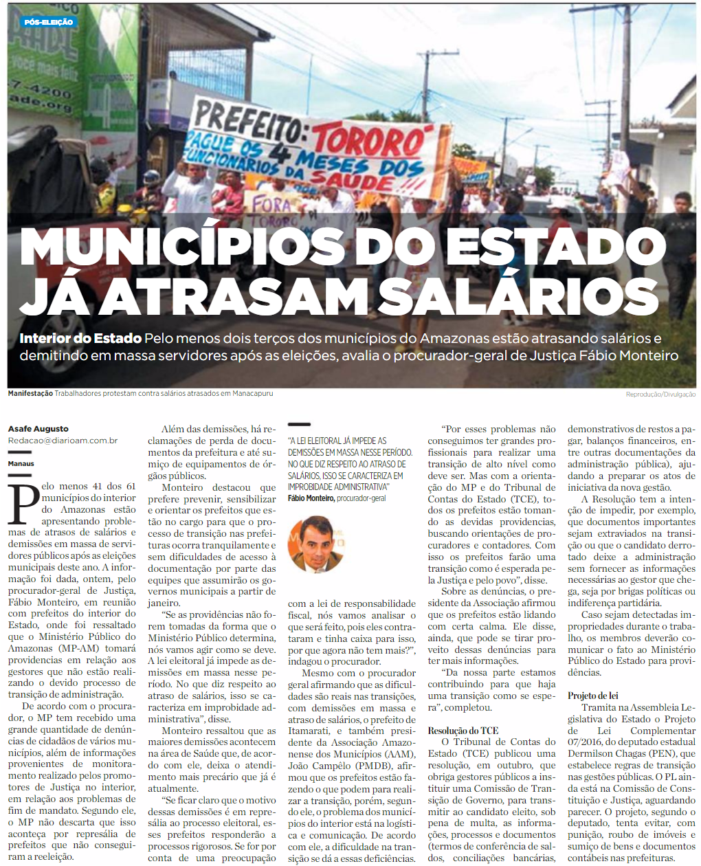 21/11/16 Diário do Amazonas Municípios do estado já atrasam salários