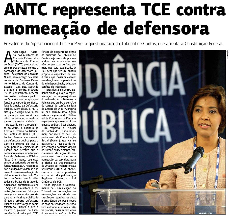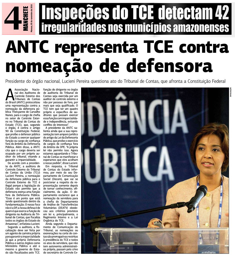 05/11/16 Em Tempo ANTC representa TCE contra nomeação de defensora