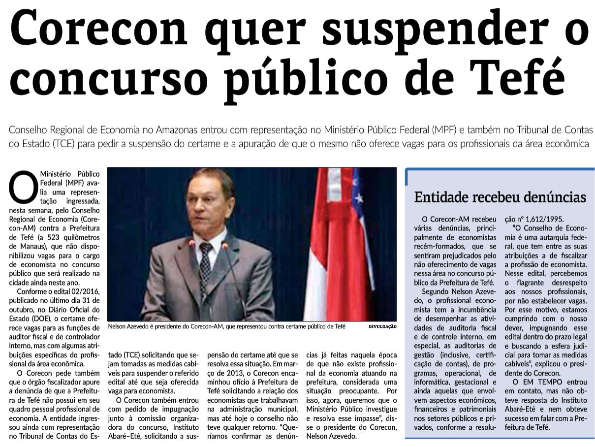 09/11/16 Em Tempo Corecon quer suspender o concurso público de e Tefé