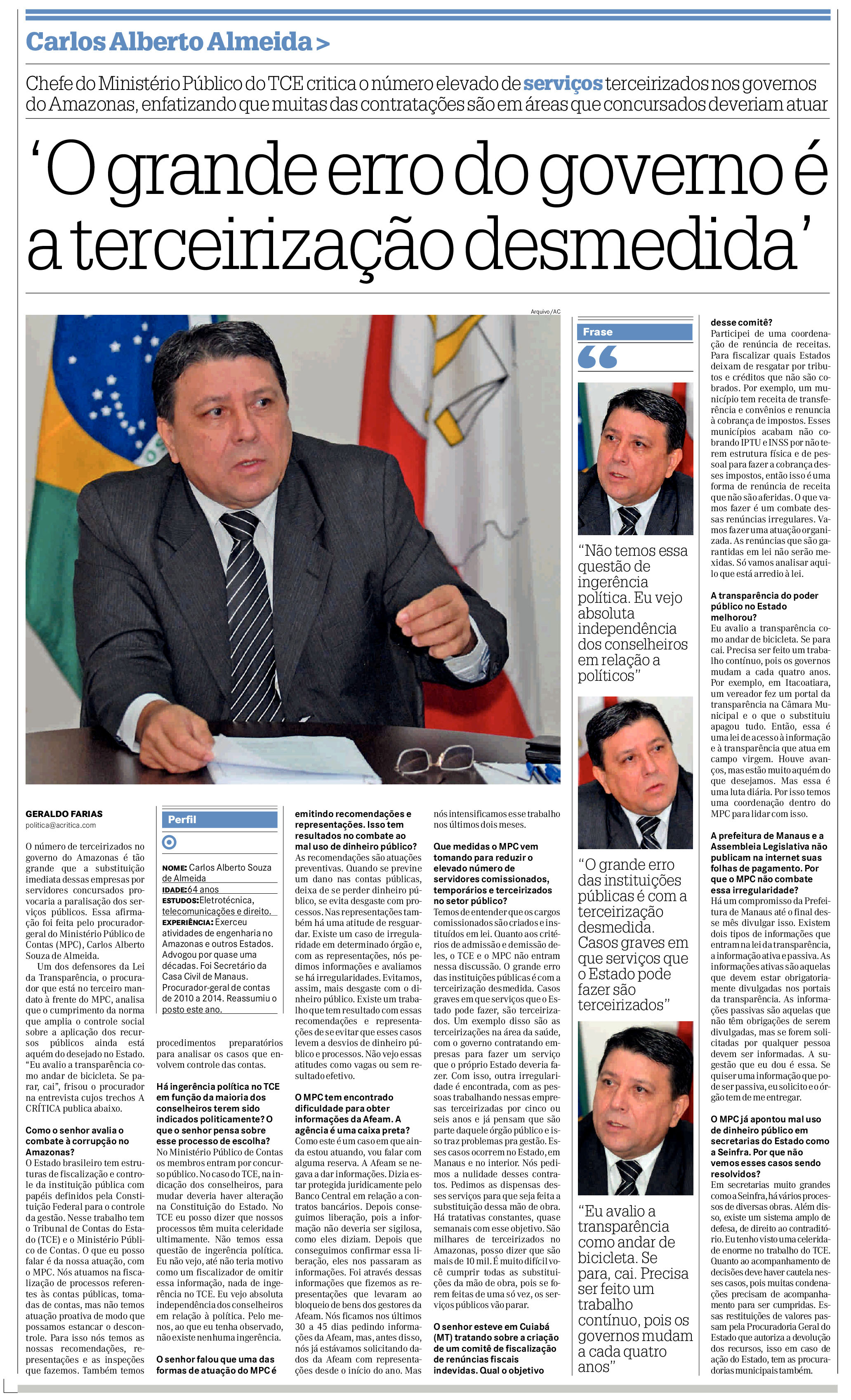 28/11/16 A Crítica 'O grande erro do governo é a terceirazação desmedida'