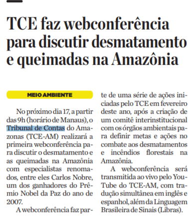| 30/06/2020 | Diário do Amazonas | Meio Ambiente |