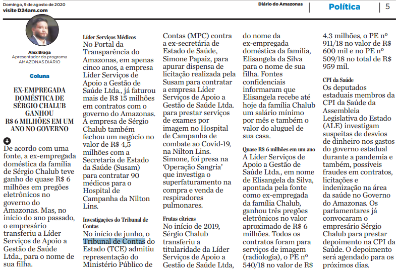 | 25/08/2020 | Diário do Amazonas | Política |