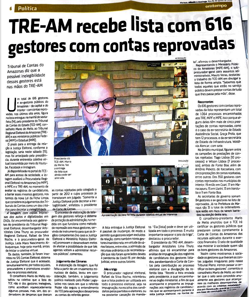 | 30/08/2020 | Diário do Amazonas | Política |