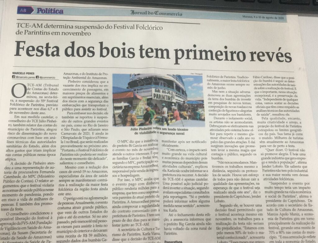 | 14/08/2020 | Diário do Amazonas | Primeiro Plano |