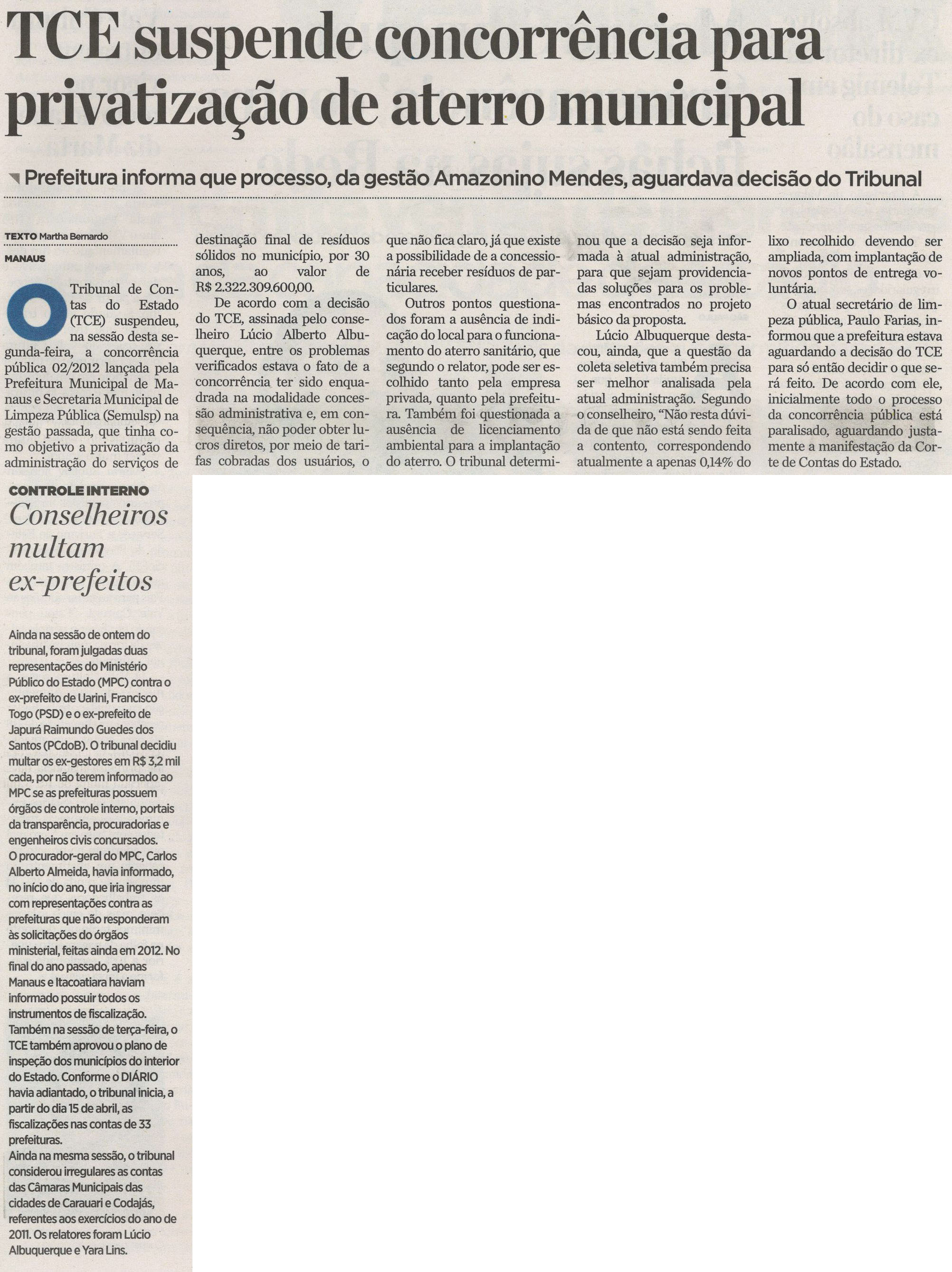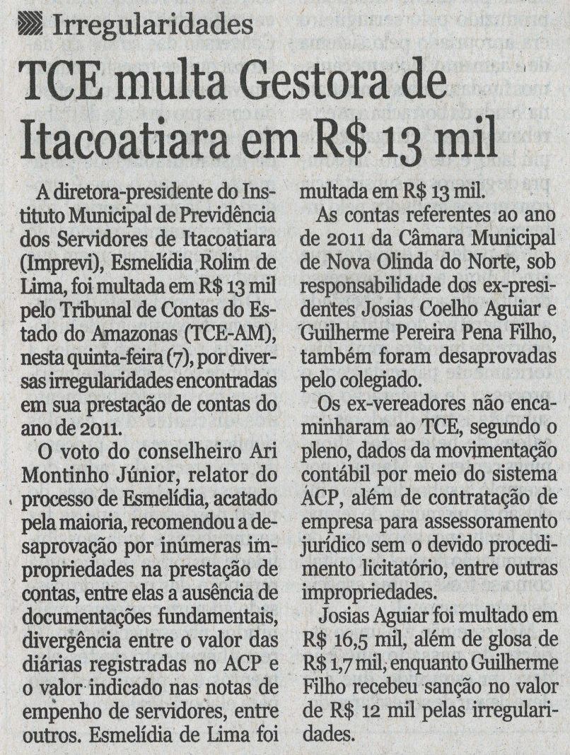 TCE multa Gestora de Itacoatiara em R$ 13 mil |