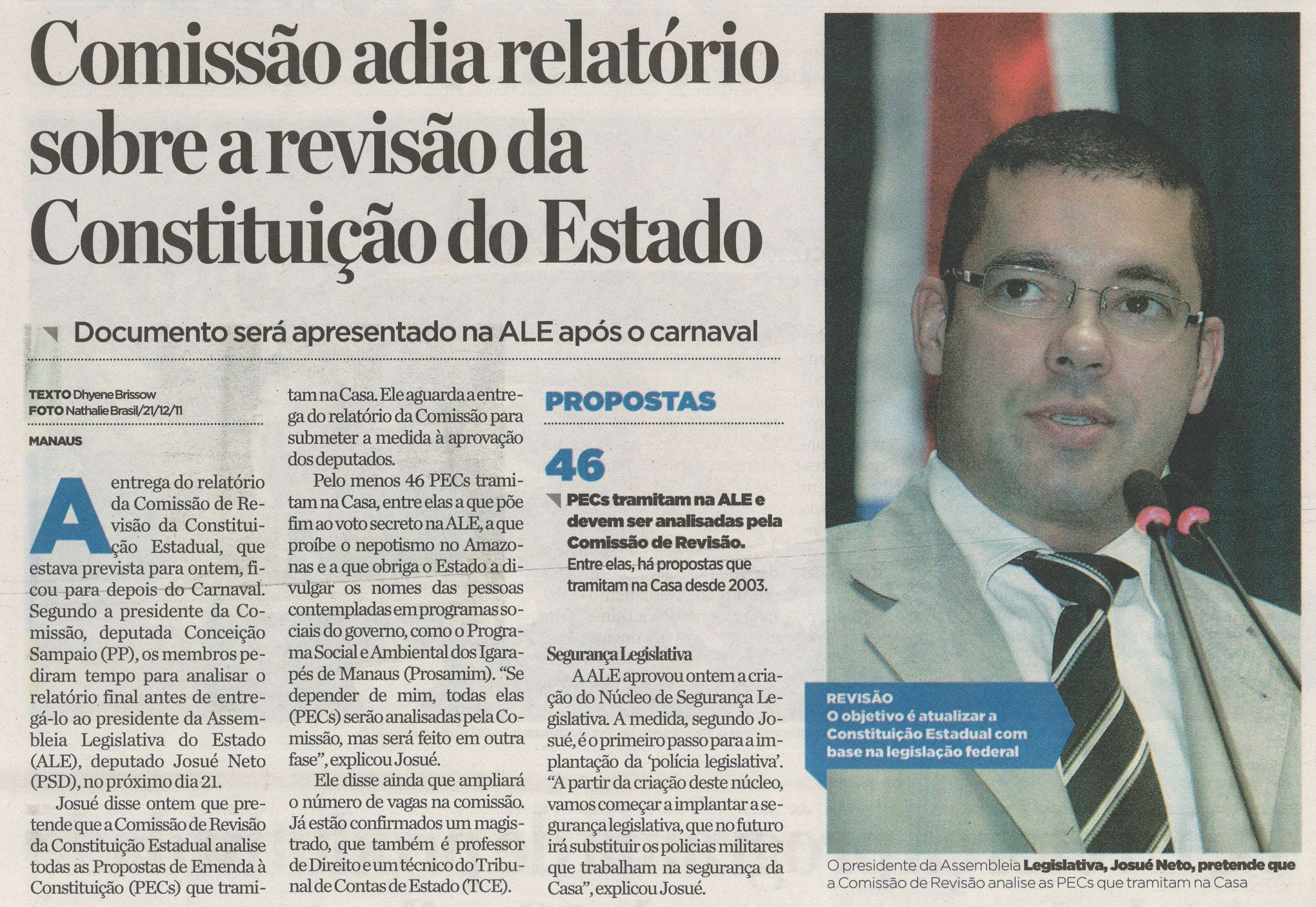 Comissão adia relatório sobre revisão da Constituição do Estado |