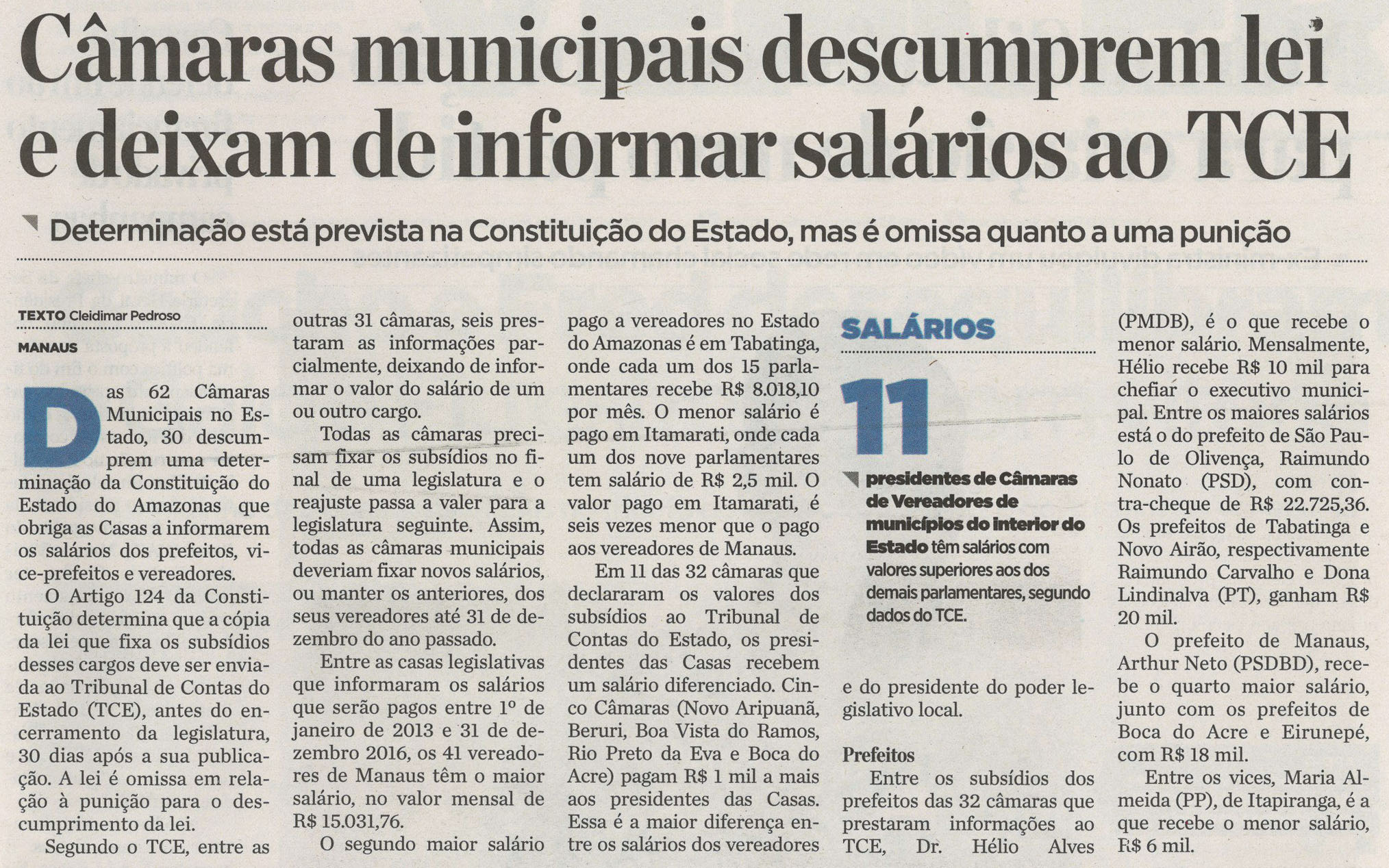 Câmaras municipais descumprem lei e deixam de informar salários ao TCE |