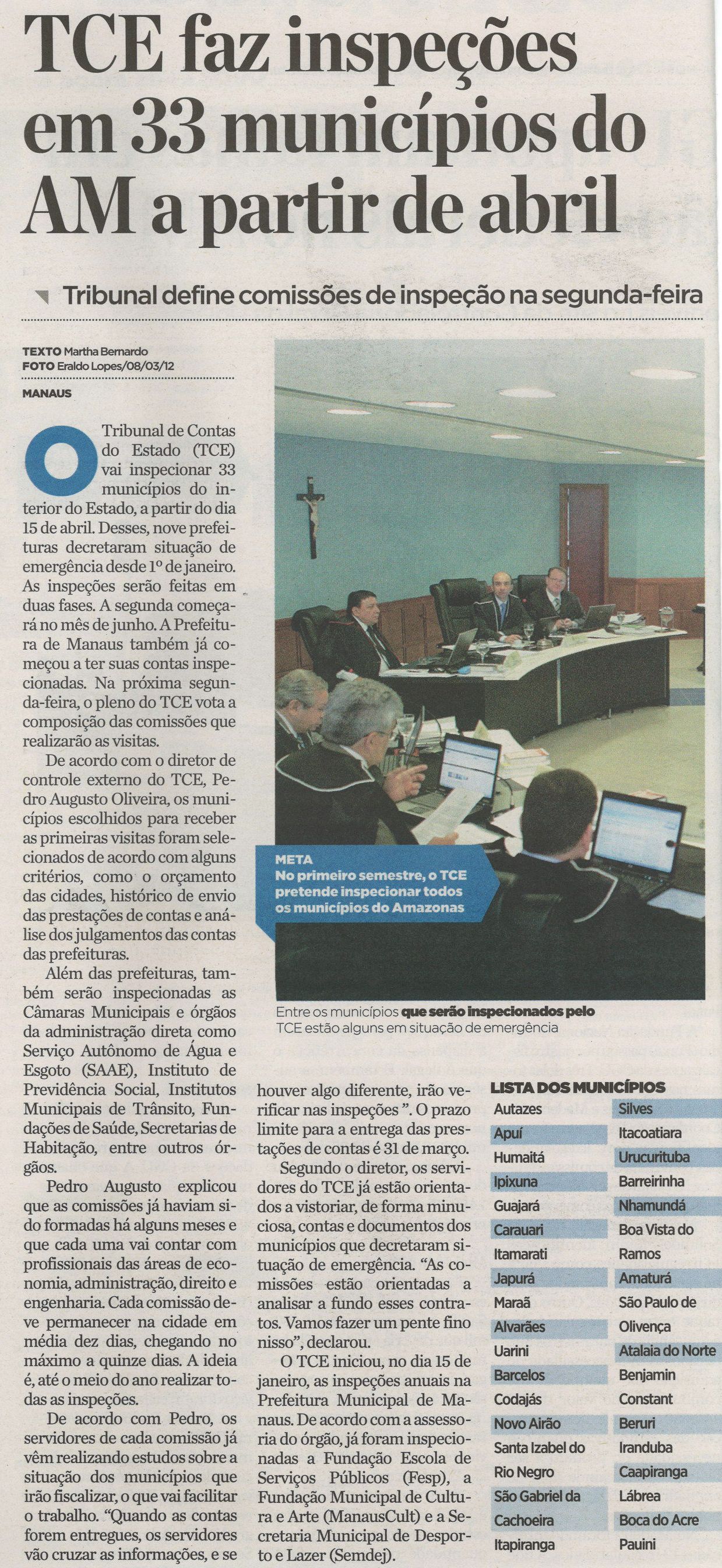 TCE faz inspeções em 33 municípios do AM a partir de abril |