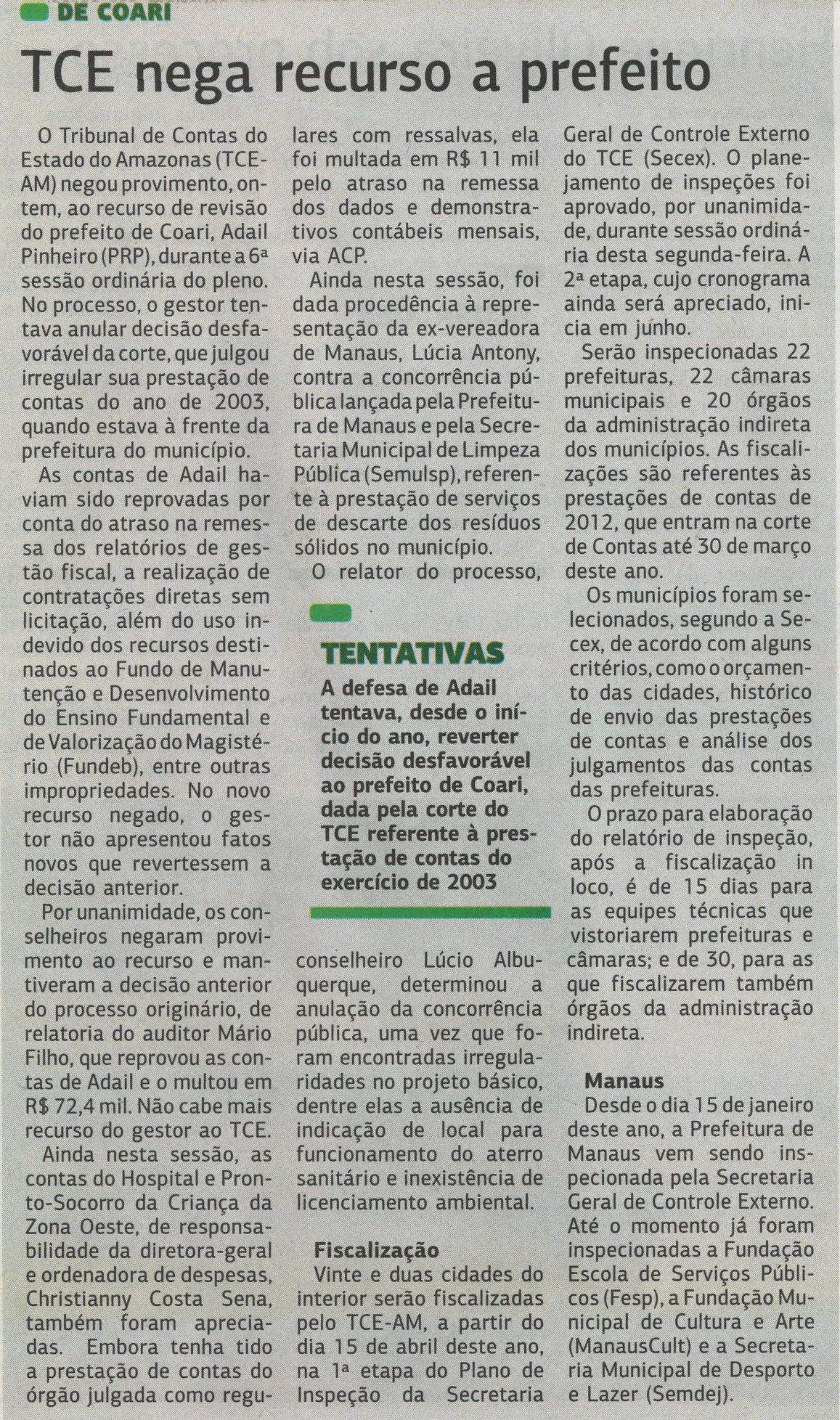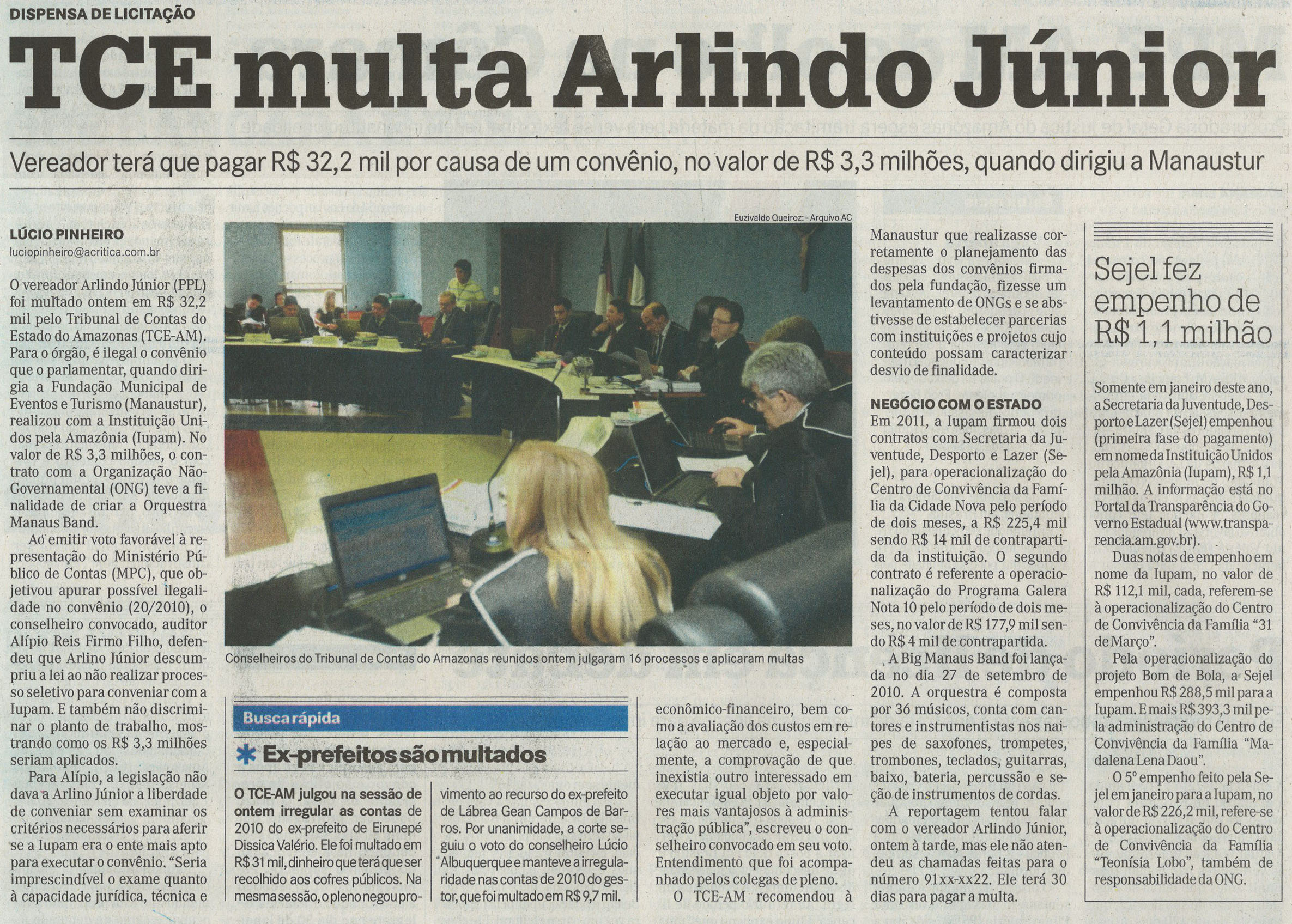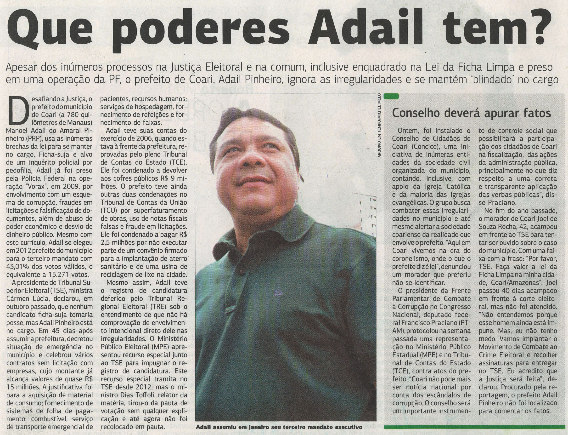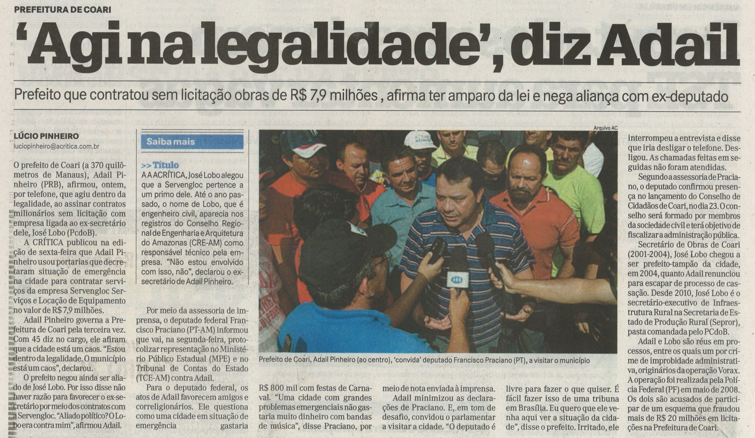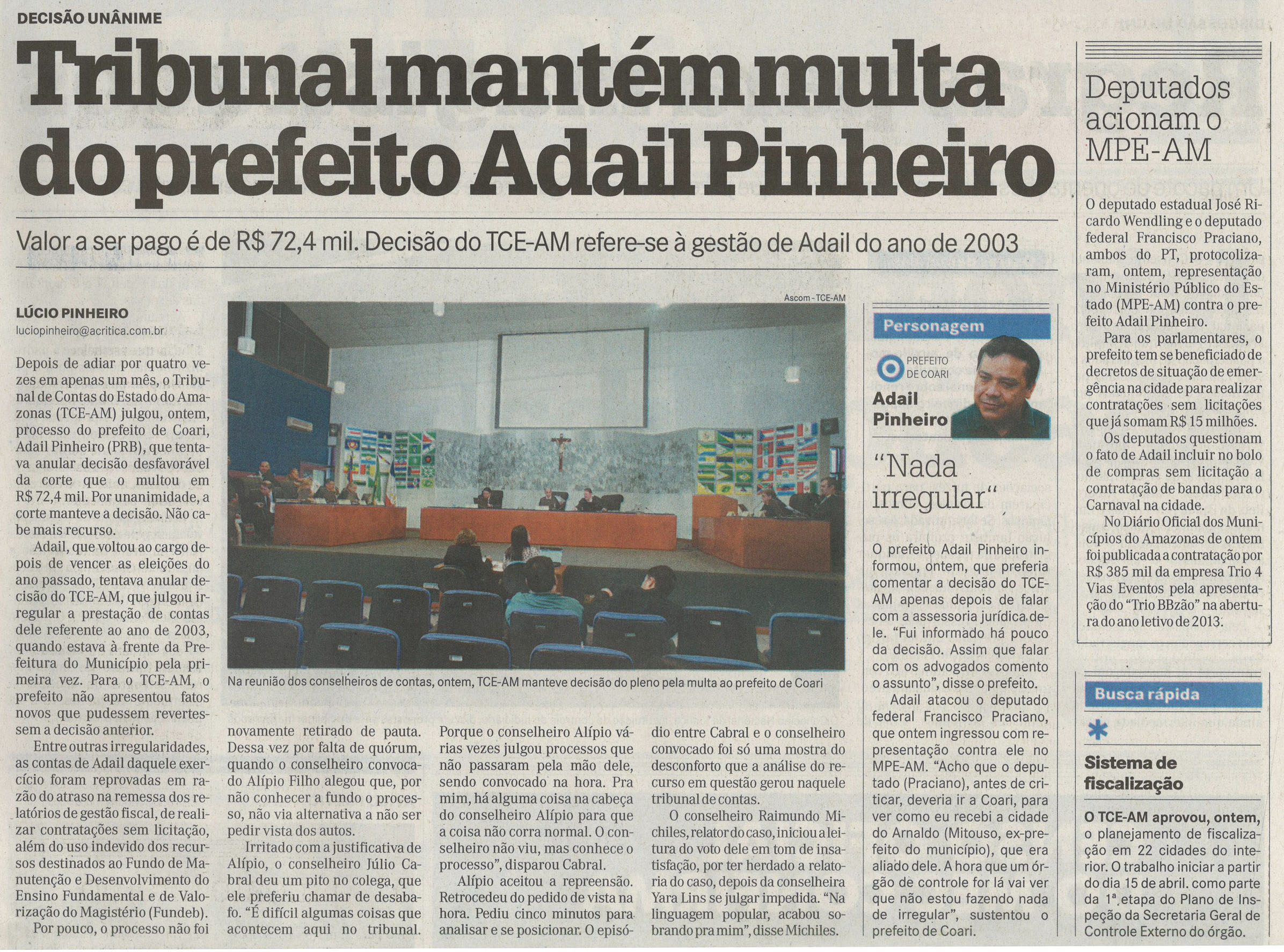 Tribunal mantém multa do prefeito Adail Pinheiro |