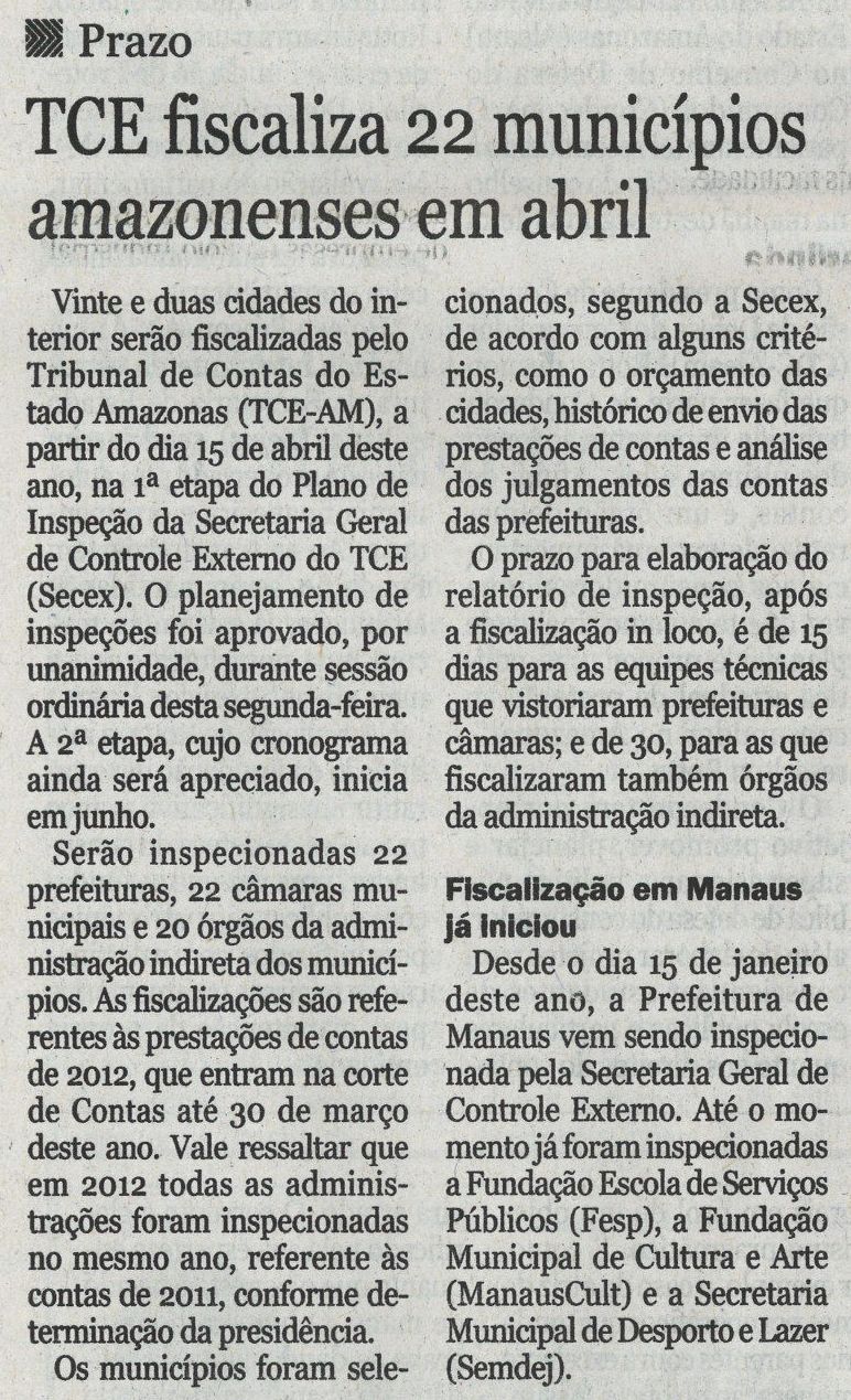 TCE fiscaliza 22 municípios amazonenses em abril |