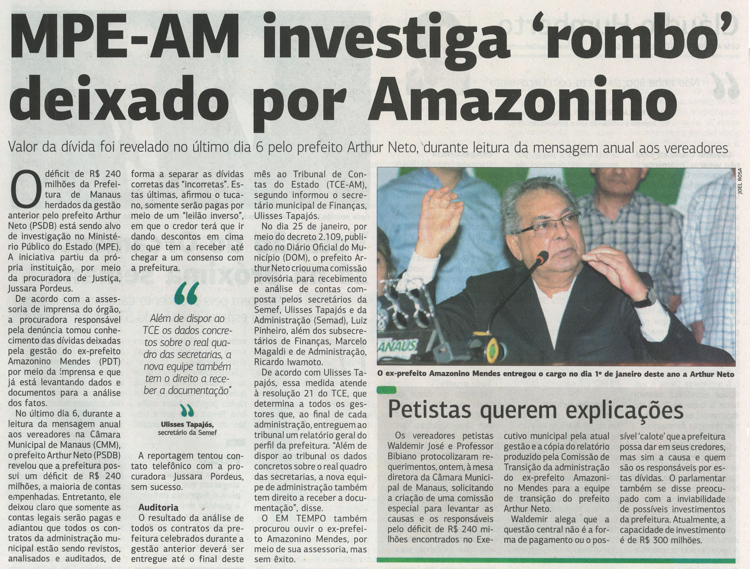 MPE-AM investiga 'rombo' deixado por Amazonino |