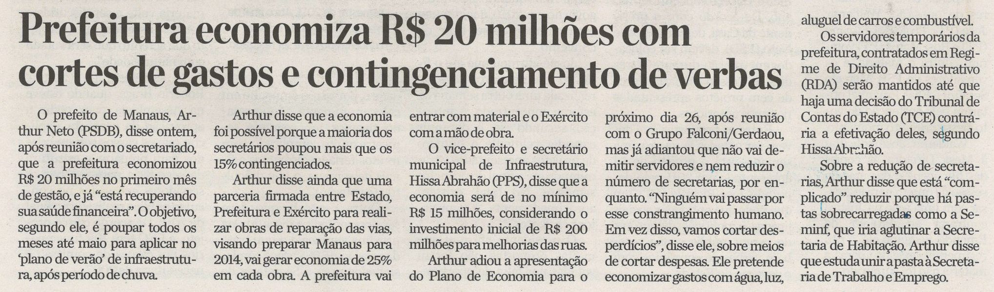 Prefeituras economiza R$ 20 milhões com cortes de gastos e contingenciamento de verbas |