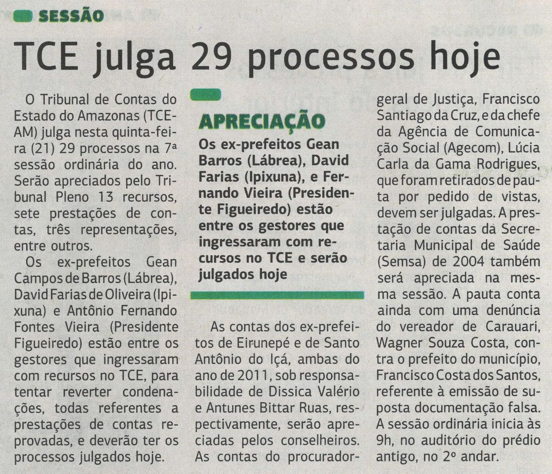 Tribunal de Contas do Estado julga 29 processos na sessão desta quinta-feira |