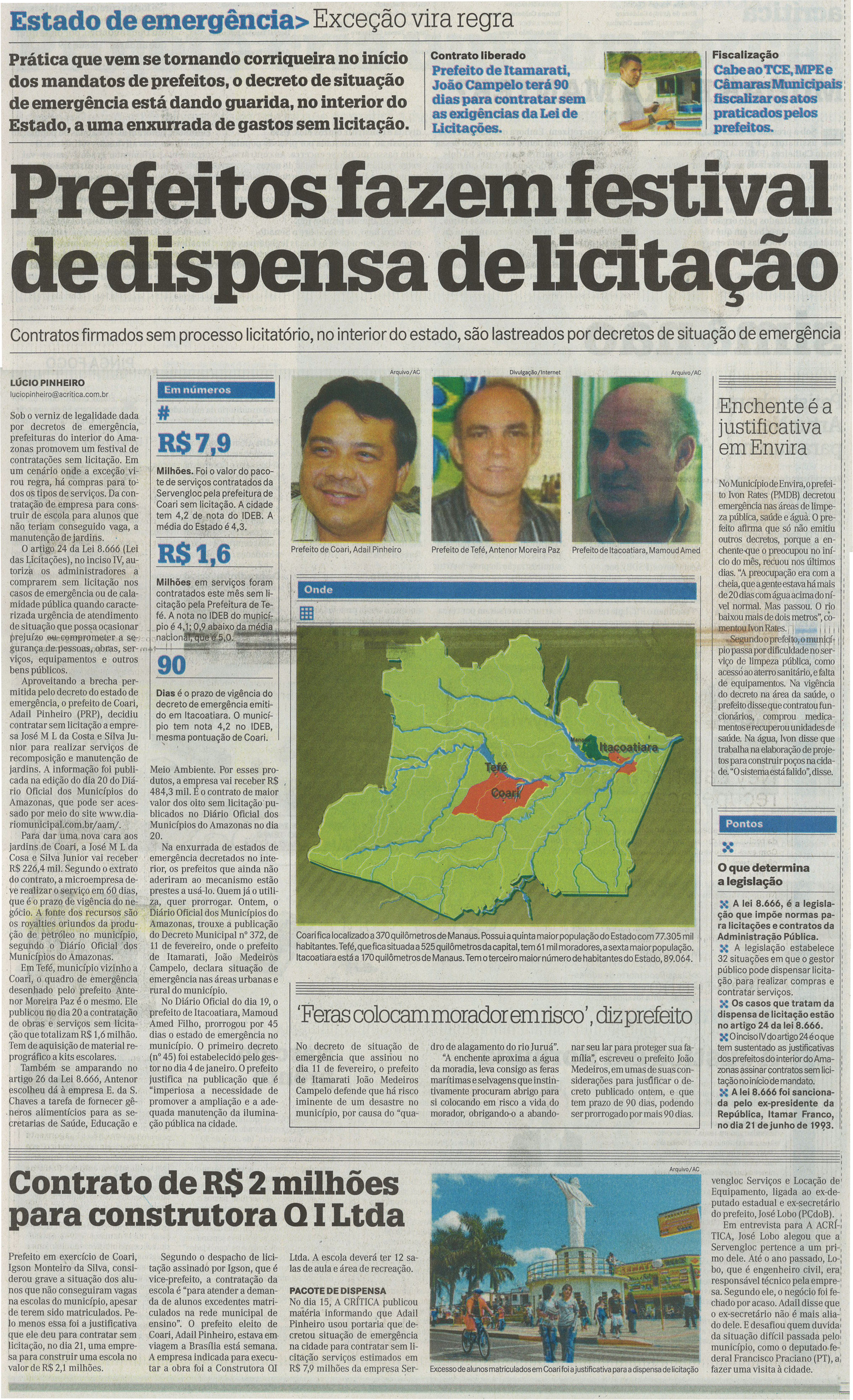 Em situação de emergência, prefeitos já firmaram 17 contratos sem licitação |