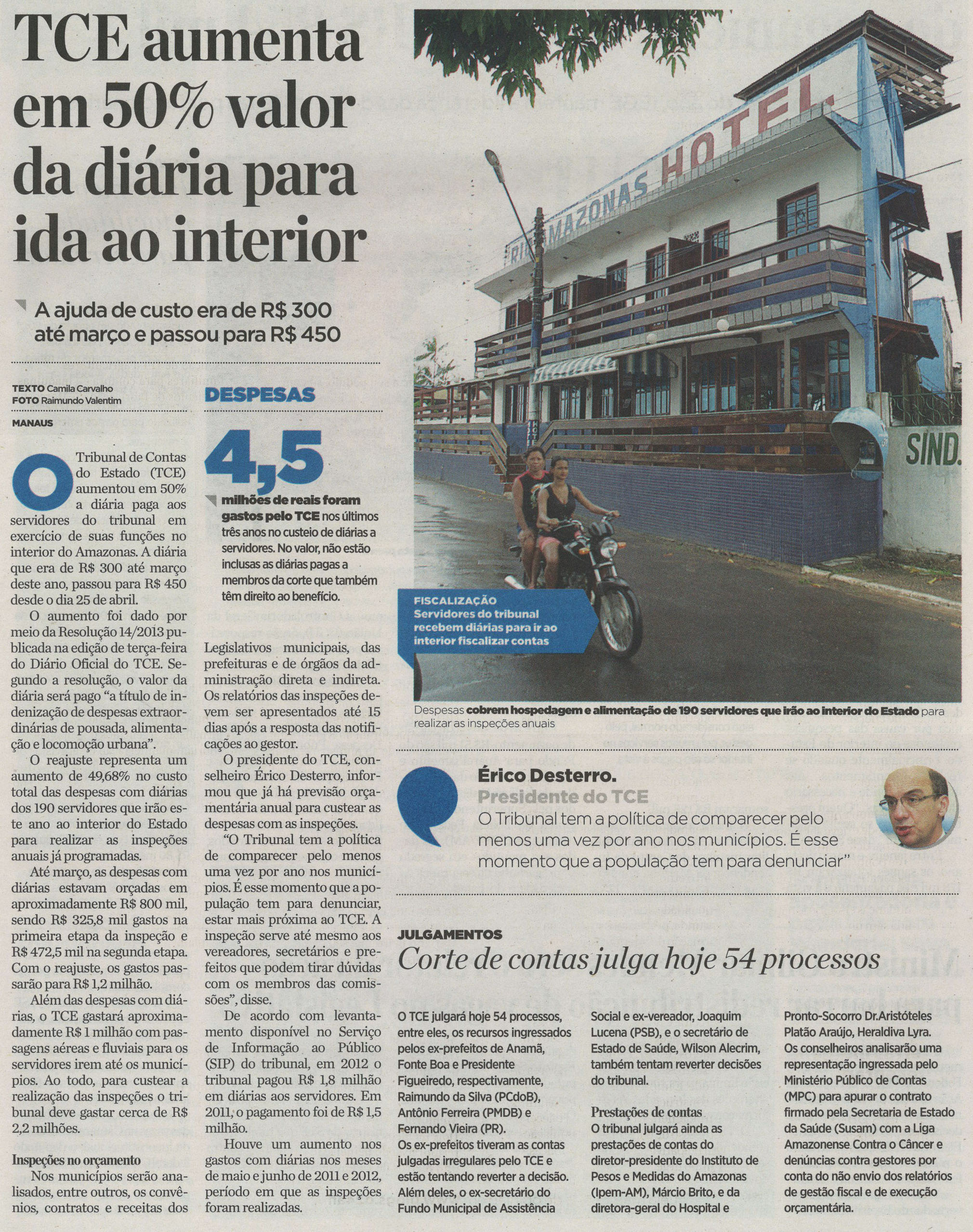 TCE aumenta em 50% valor da diária para ida ao interior |