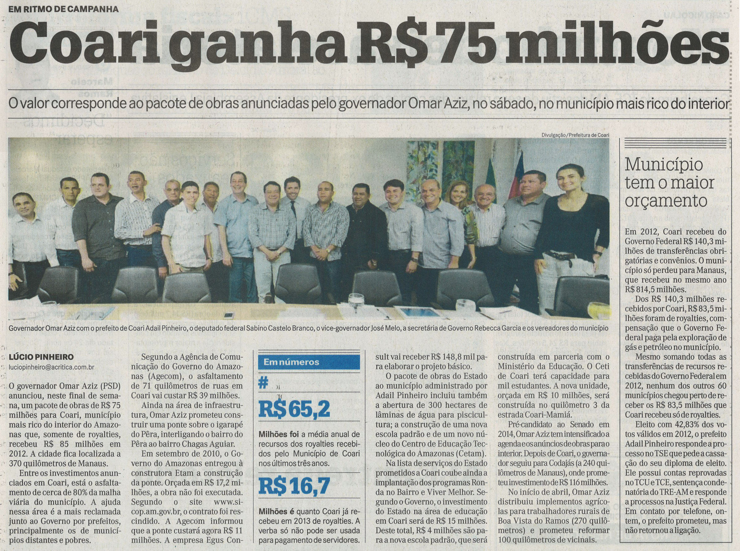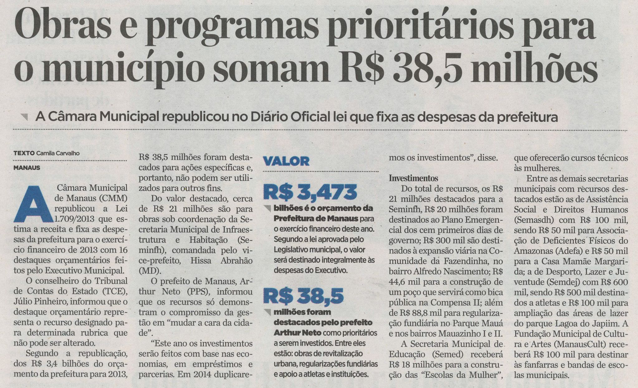 Obras e programas prioritários para o município somam R$ 38,5 milhões |