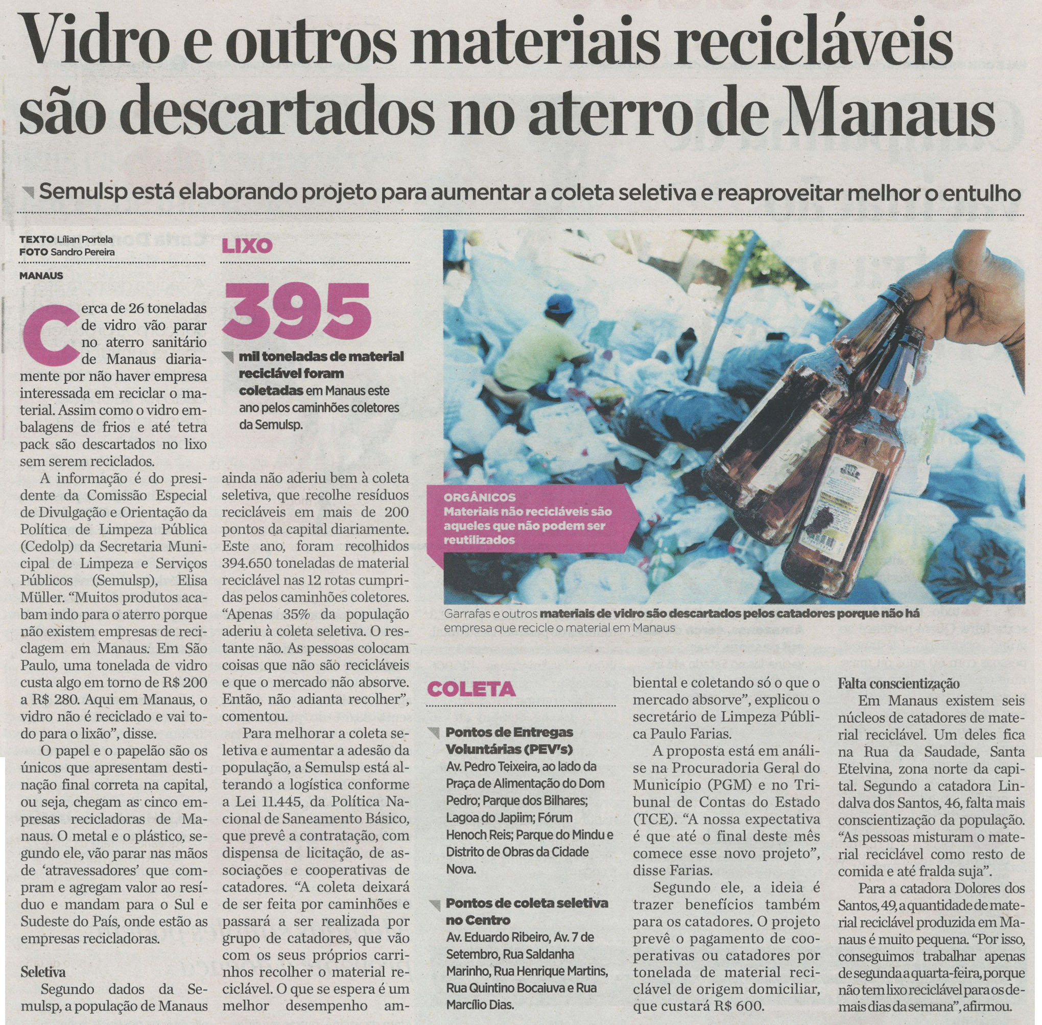 Vidro e outros materiais recicláveis são descartados no aterro de Manaus |