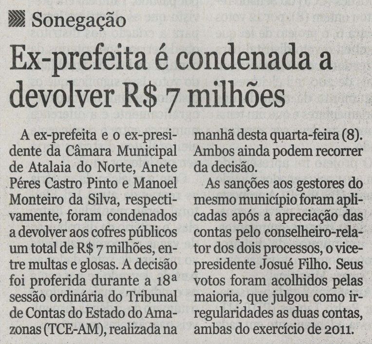 Ex-prefeito é condenada a devolver R$ 7 milhões |