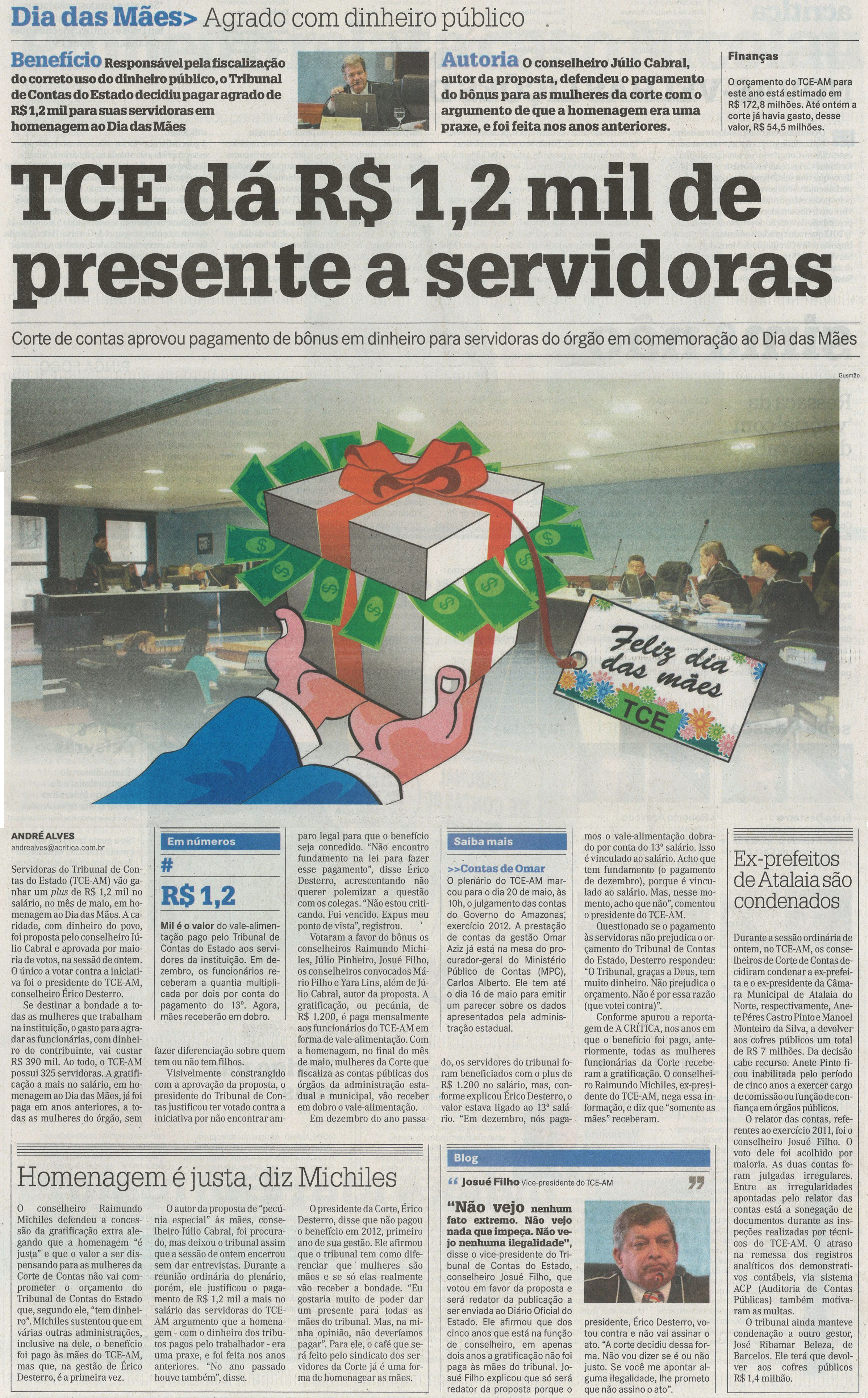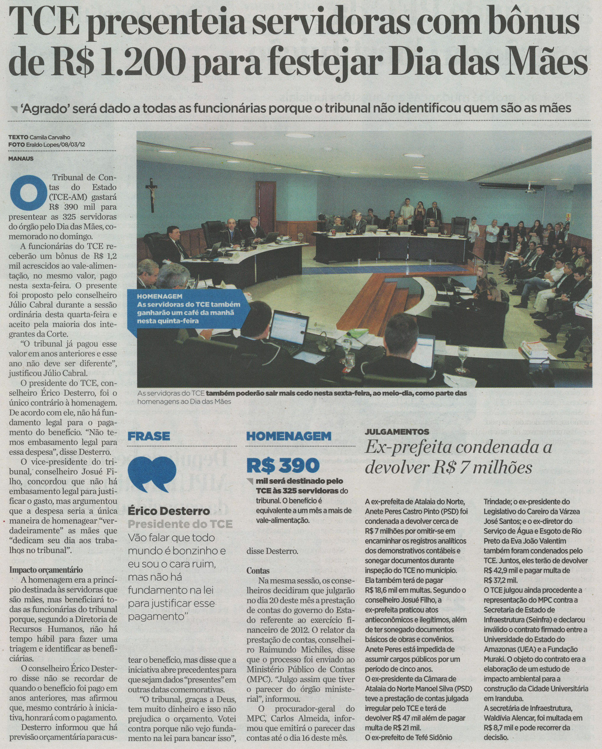 TCE dá R$ 1,2 mil de presente a servidoras |