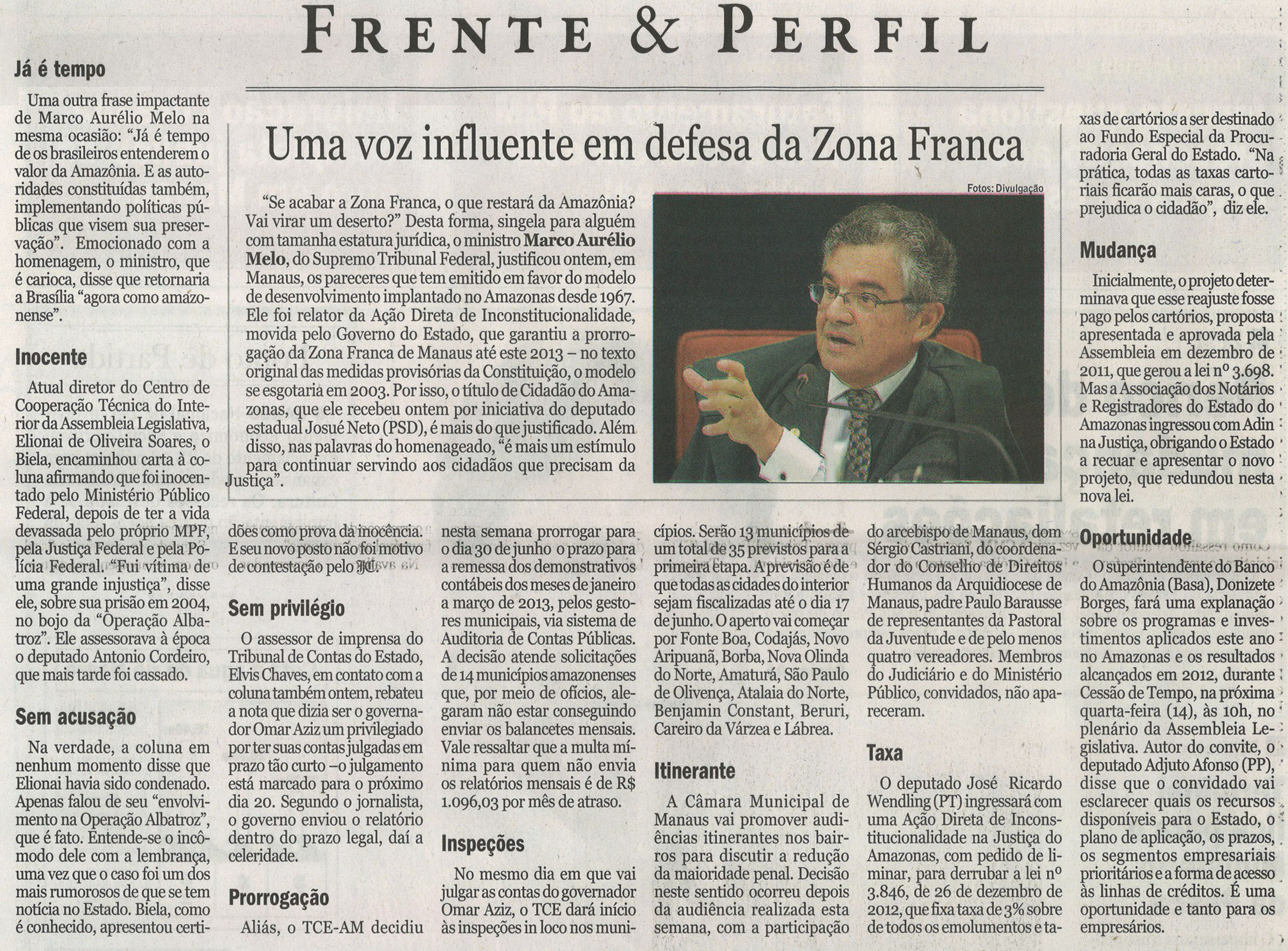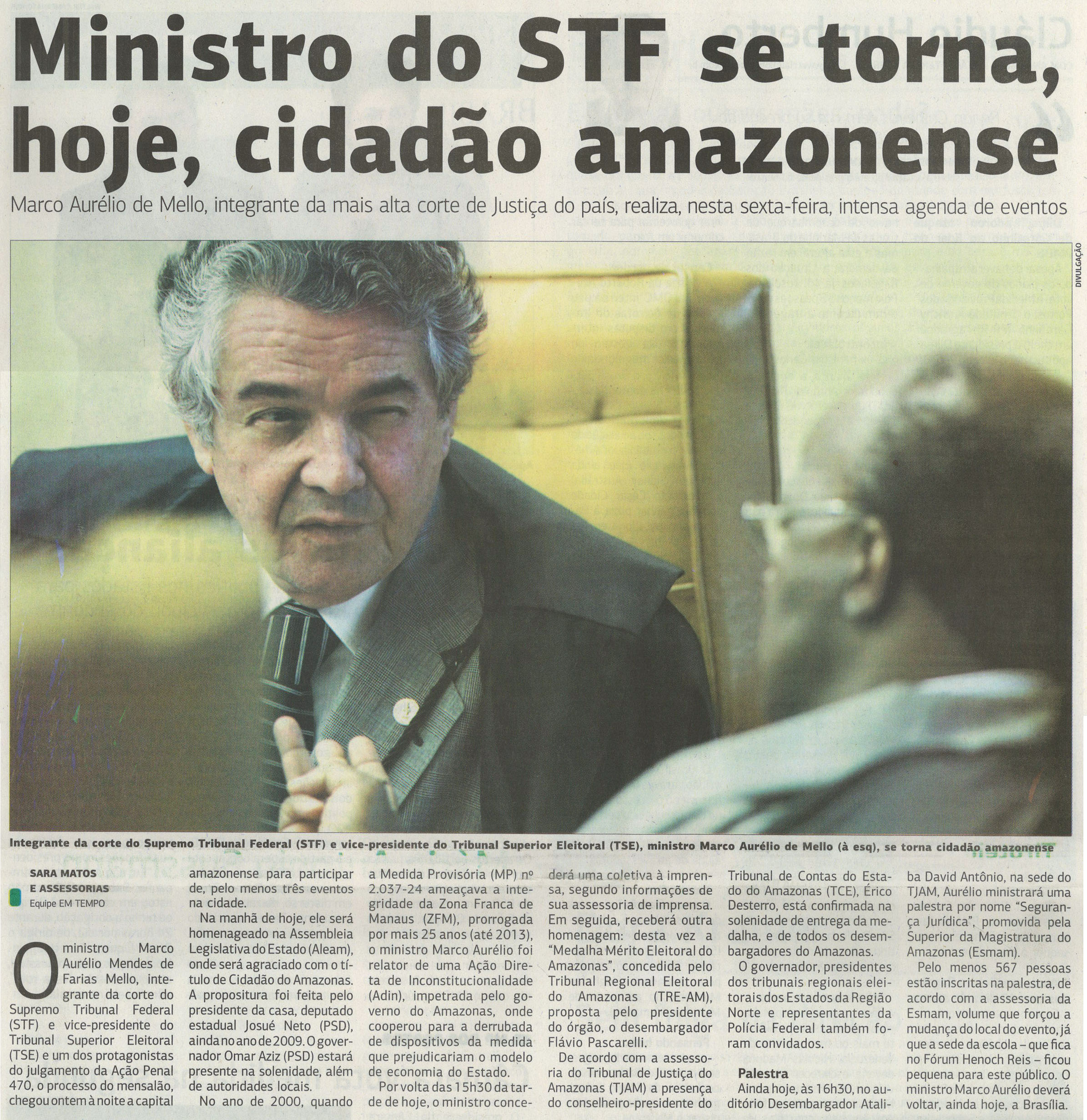 Ministro do STF se torna, hoje, cidadão amazonense |