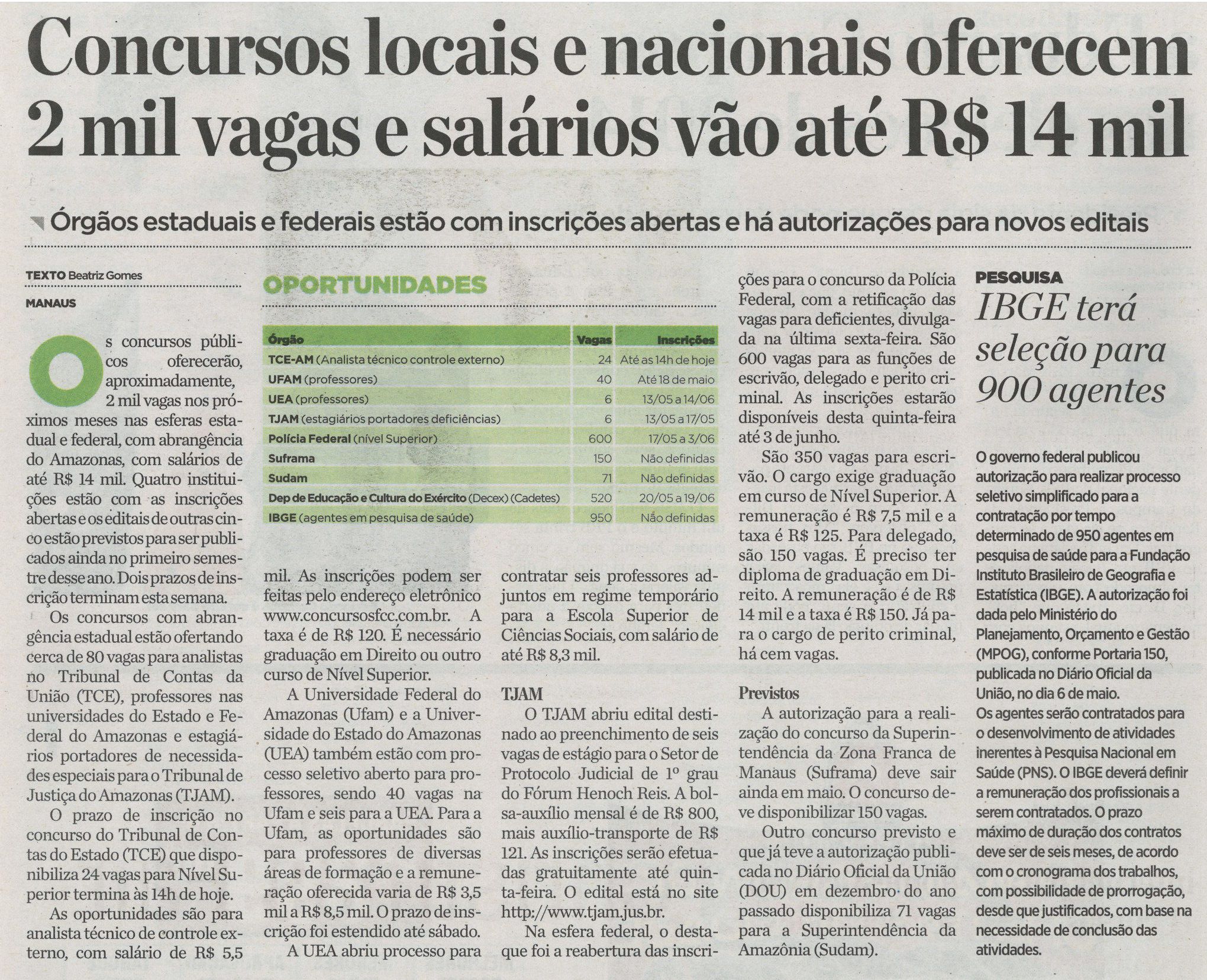 Concursos locais e nacionais oferecem 2 mil vagas e salários vão até R$ 14 mil |
